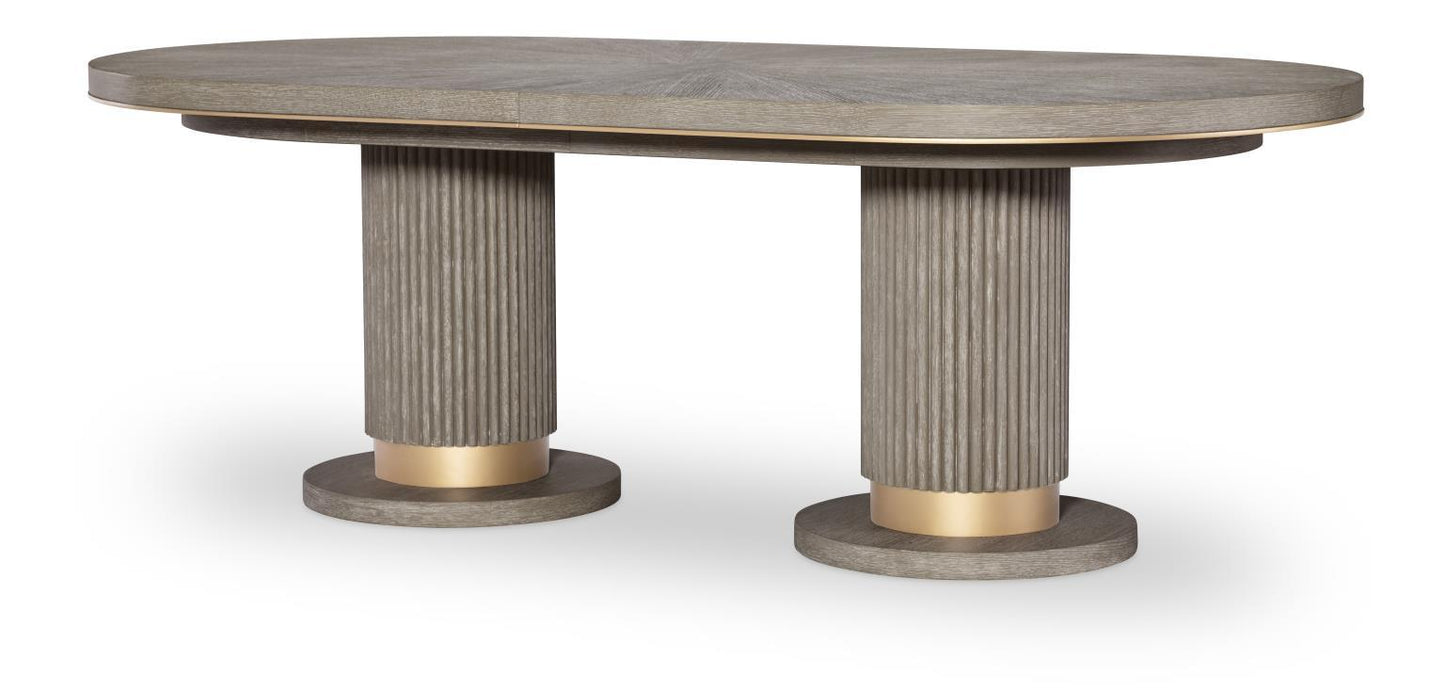 Approachable glamour. That's the look of the Miramar Total Home Collection from Legacy Classic - Modern. The collection features and acrylic accents bold fluting detail and waterfall edges. The accent finish is used in banding on case bases and foot rails table bases and on the posters of the Canopy Bed and low-post bed.
