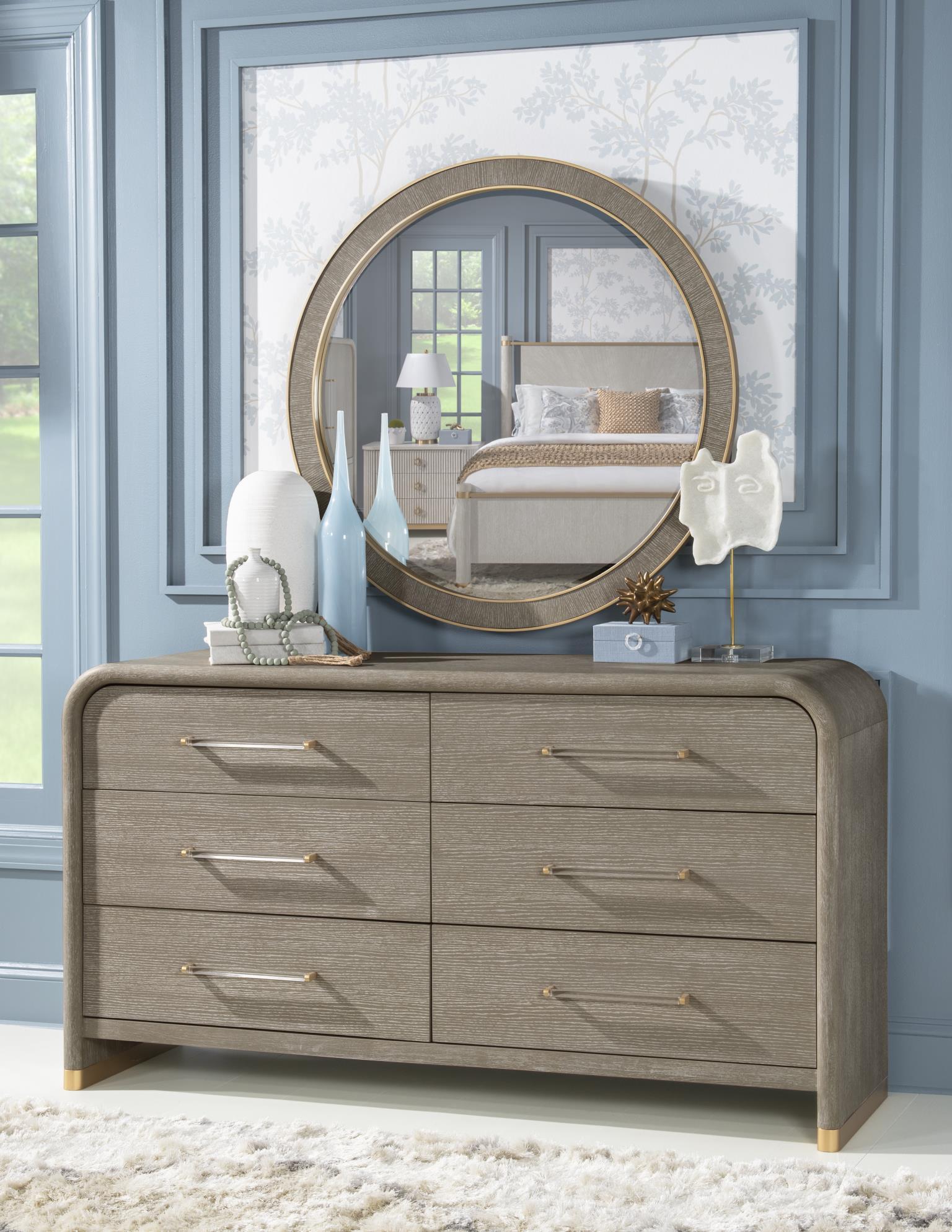 Approachable glamour. That's the look of the Miramar Total Home Collection from Legacy Classic - Modern. The collection features and acrylic accents bold fluting detail and waterfall edges. The accent finish is used in banding on case bases and foot rails table bases and on the posters of the Canopy Bed and low-post bed.
