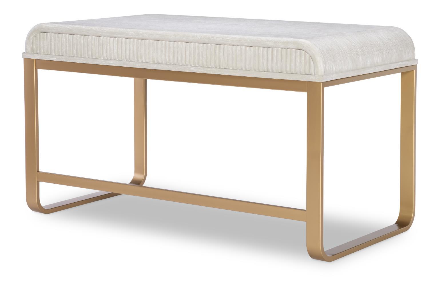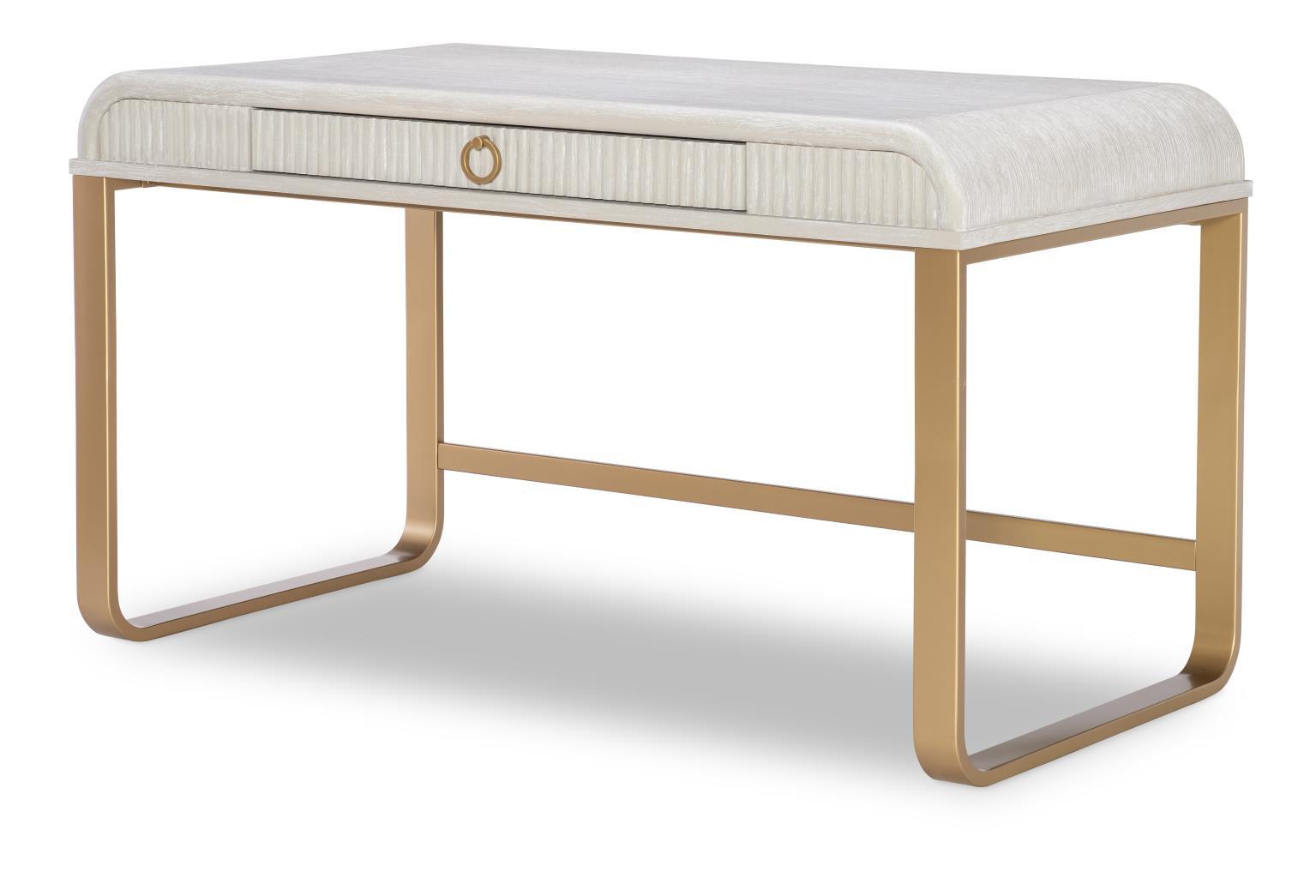Approachable glamour. That's the look of the Miramar Total Home Collection from Legacy Classic - Modern. The collection features and acrylic accents bold fluting detail and waterfall edges. The accent finish is used in banding on case bases and foot rails table bases and on the posters of the Canopy Bed and low-post bed.