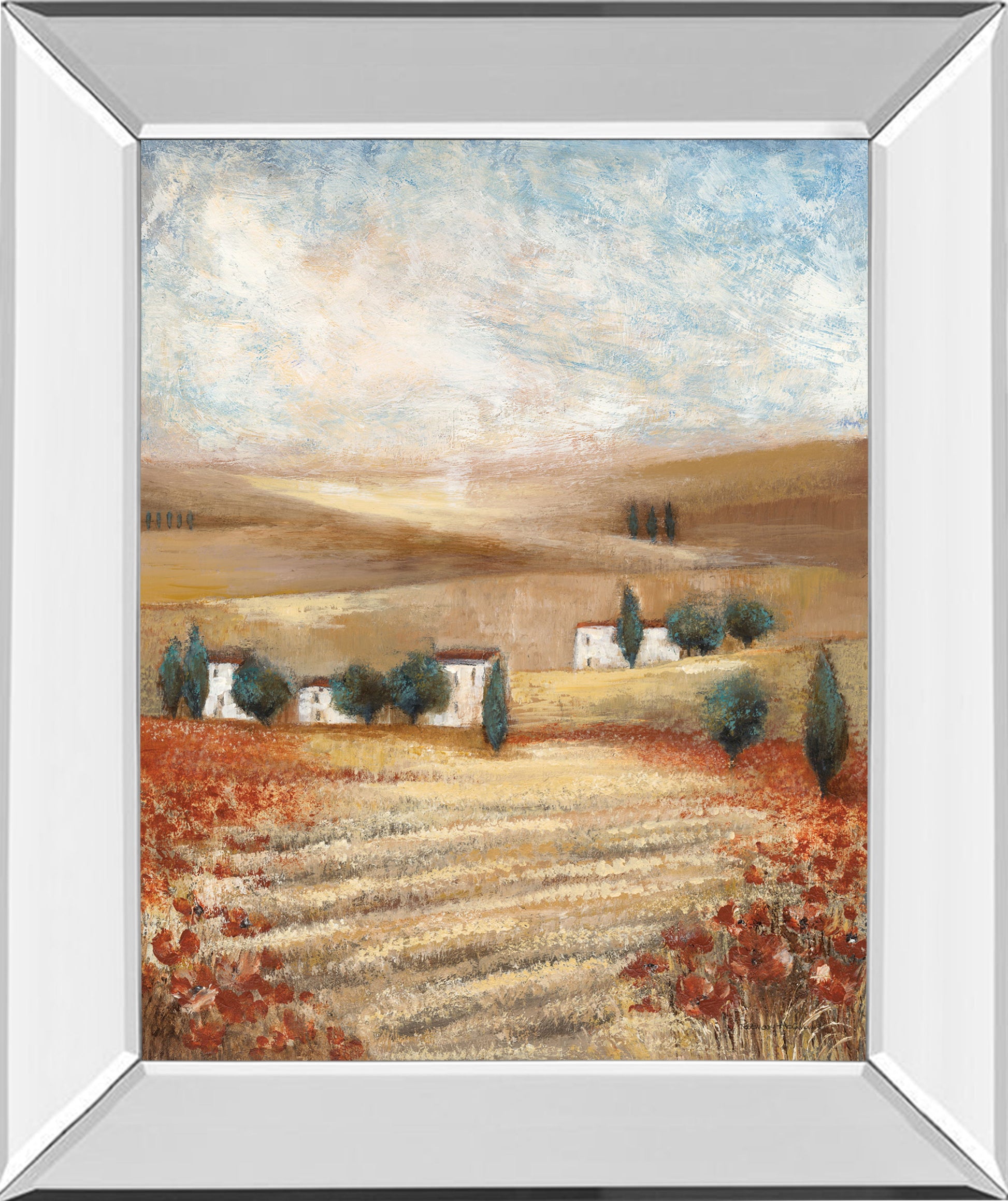 Mirrored Frame Hilltown Landscape I By Rosie Abrahams - White