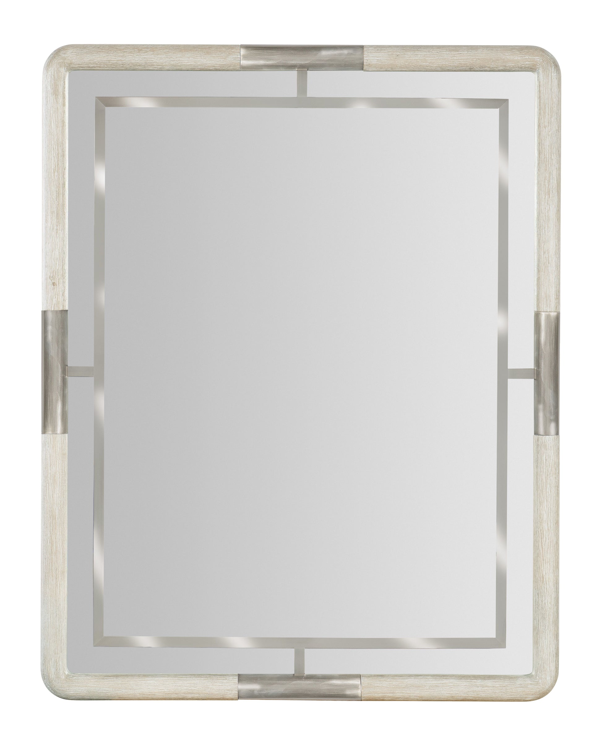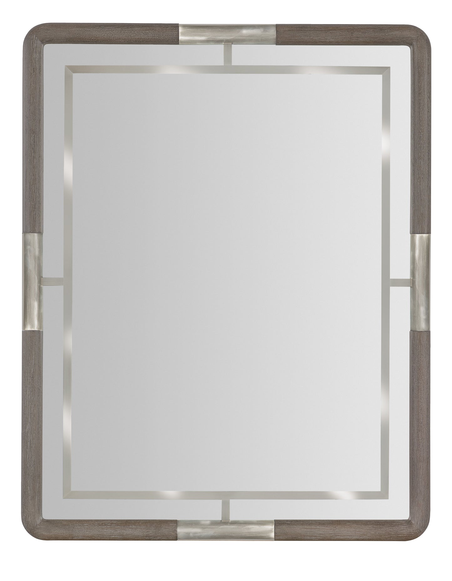 In a timeless compass-like profile, the Modern Mood Landscape Mirror combines Quartered Oak Veneers in the Diamond finish with wire-brush detailing and warm pewter metal accents for a striking focal-point piece.