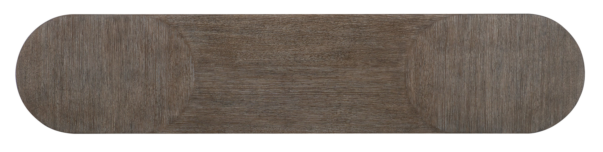 Architectural and timeless with a luxe mixture of materials, the striking Modern Mood Console Table has a narrow, rounded rectangle shape and metal-wrapped bands on the legs. Crafted of Quartered Oak Veneers in a dark Mink finish, the table has a rounded apron and legs, matched veneers on the top and is finished on all sides. At only 16 inches deep, the console can add style to even tight spaces.