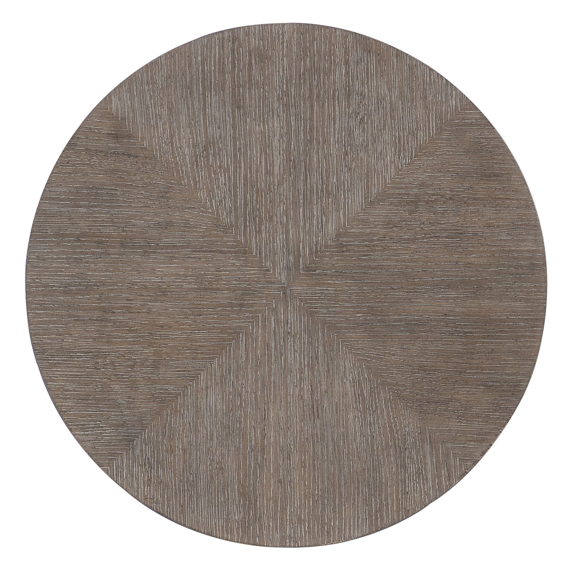 Sleek and stylish with a simple and timeless modern profile, the Modern Mood Round End Table combines Quartered Oak Veneers with a metal-wrapped band around the base in a warm pewter finish. The wood table is finished in Diamond, featuring tactile wire-brush detailing with crystal-like alabaster and pewter hues for a soft sophistication.