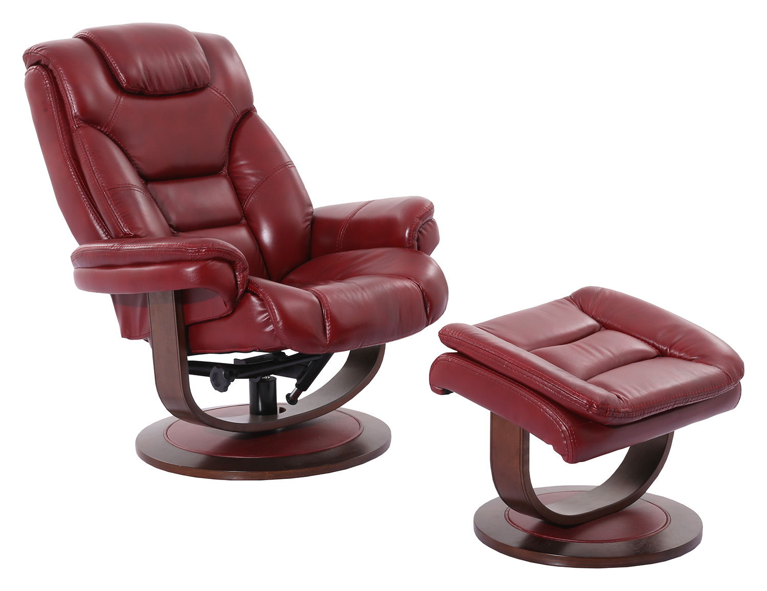 Monarch - Manual Reclining Swivel Chair and Ottoman - Rouge