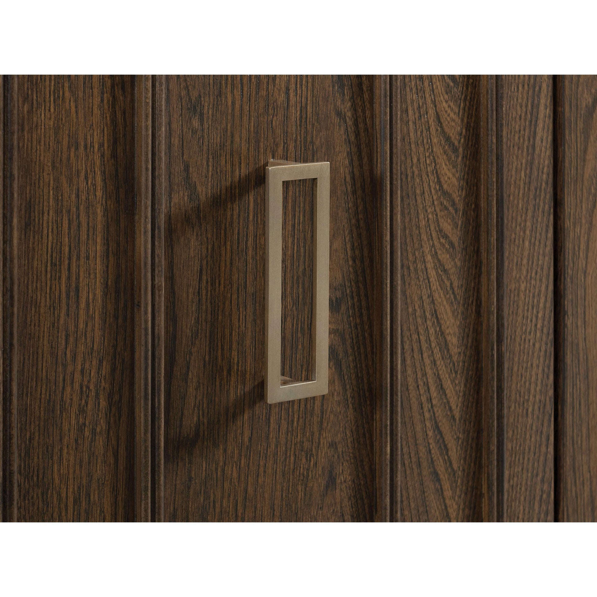 - Left and right doors each enclose a drawer with dovetail joinery, ball bearing extension guides, and a removable felt-lined bottom