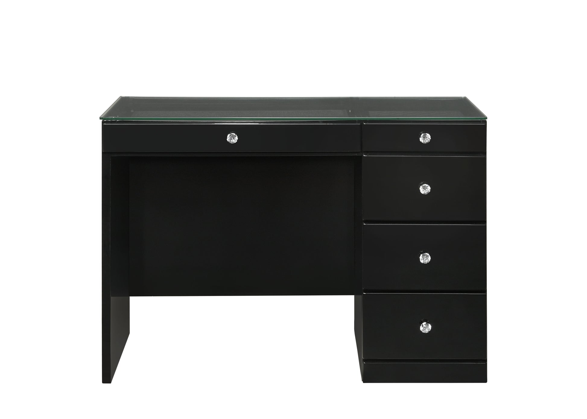 Morgan - Vanity Desk With Glass Top And LED Mirror - Black