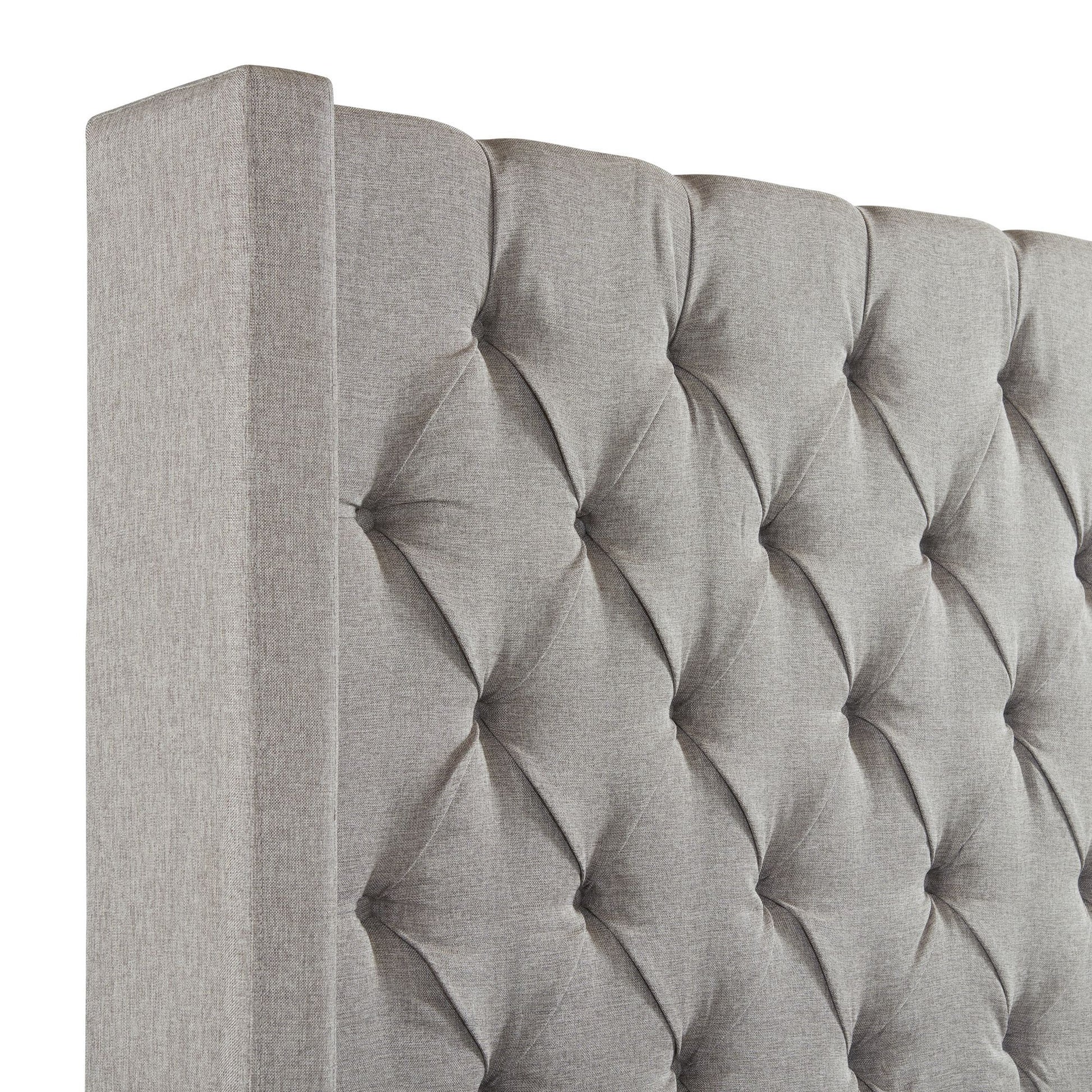 The Morrow Upholstered Bed will be the focal point in any bedroom. The diamond tufted headboard is perfectly upholstered in a durable fabric. The grand size of the headboard adds a little bit of drama to your space while still bringing warmth and a sense of coziness with the fabric wrapped framing. Add this to your bedroom for an effortless look of elegance.