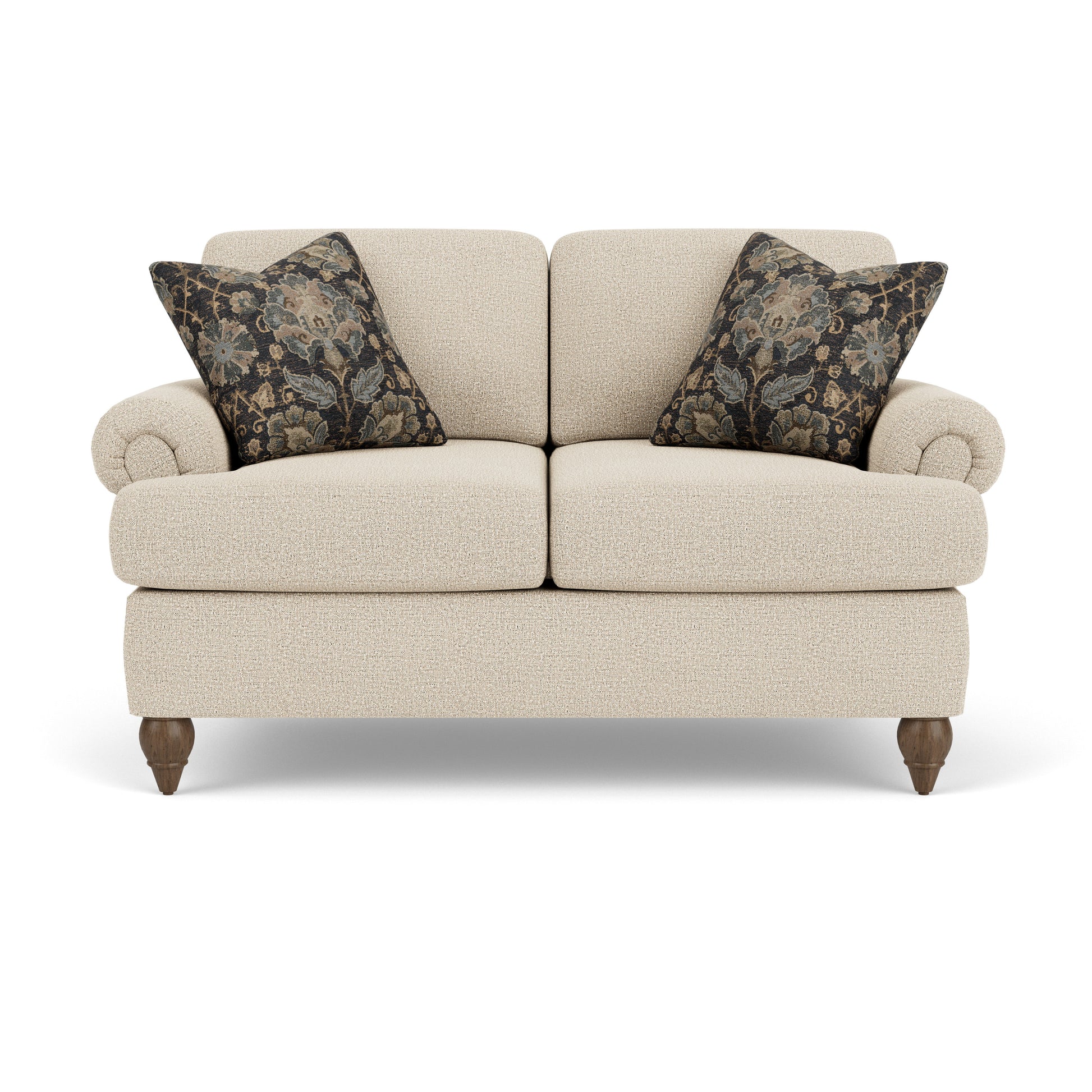 Spirit Meets Style Cozy up with a loved one or claim it all for yourself with the Moxy loveseat that lets you personalize details for the perfect look and feel. Formal panel roll arms sit on round turned legs that are available in a choice of three distinct wood finishes—Florentine, Valencia, or Urban Renewal—to complement any décor. The removable T-shaped seat cushions offer a distinctive look and added comfort. Sink into the ideal level of support with your choice of our luxury or plush cushions. Complete the look and showcase your lifestyle with hundreds of different fabric choices, including high-performance and sustainable textiles. Superior frame construction and our patented C-Flex Blue Steel Spring™ ensures your Moxy can be enjoyed for years to come.