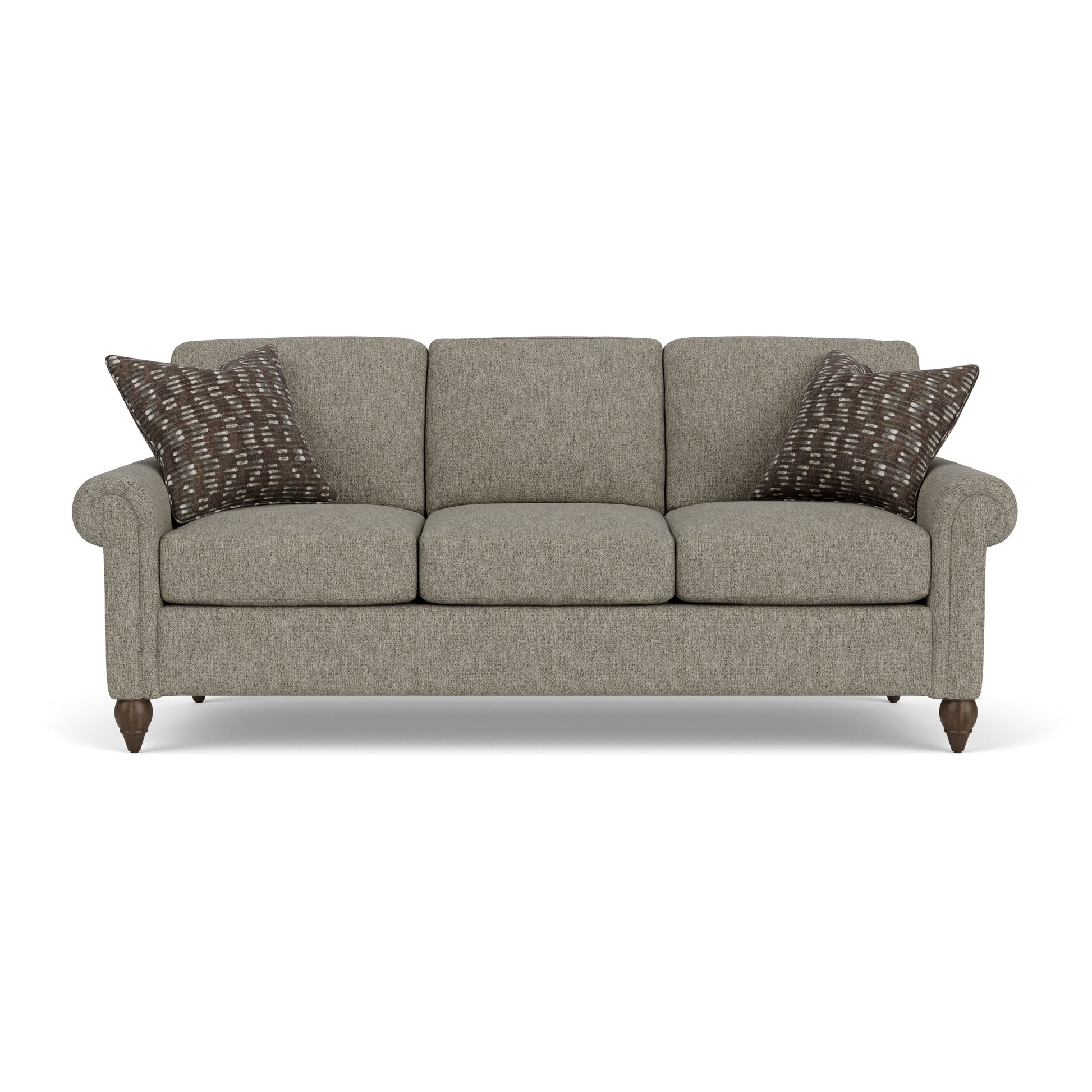 Spirit Meets Style. The Moxy sofa ensures you never have to settle for anything other than the perfect design, no matter your style. Formal panel roll arms sit on round turned legs that are available in three distinct wood finishes — Florentine, Valencia, or Urban Renewal — to complement any décor. The removable square, inside seat cushion style offers you the flexibility to rotate for added longevity. Sink into the ideal level of support with your choice of our luxury or plush cushions. Complete the look and showcase your lifestyle with hundreds of different fabric choices, including high-performance and sustainable textiles. Superior frame construction and our patented C-Flex Blue Steel Spring™ ensures your Moxy can be enjoyed for years to come.