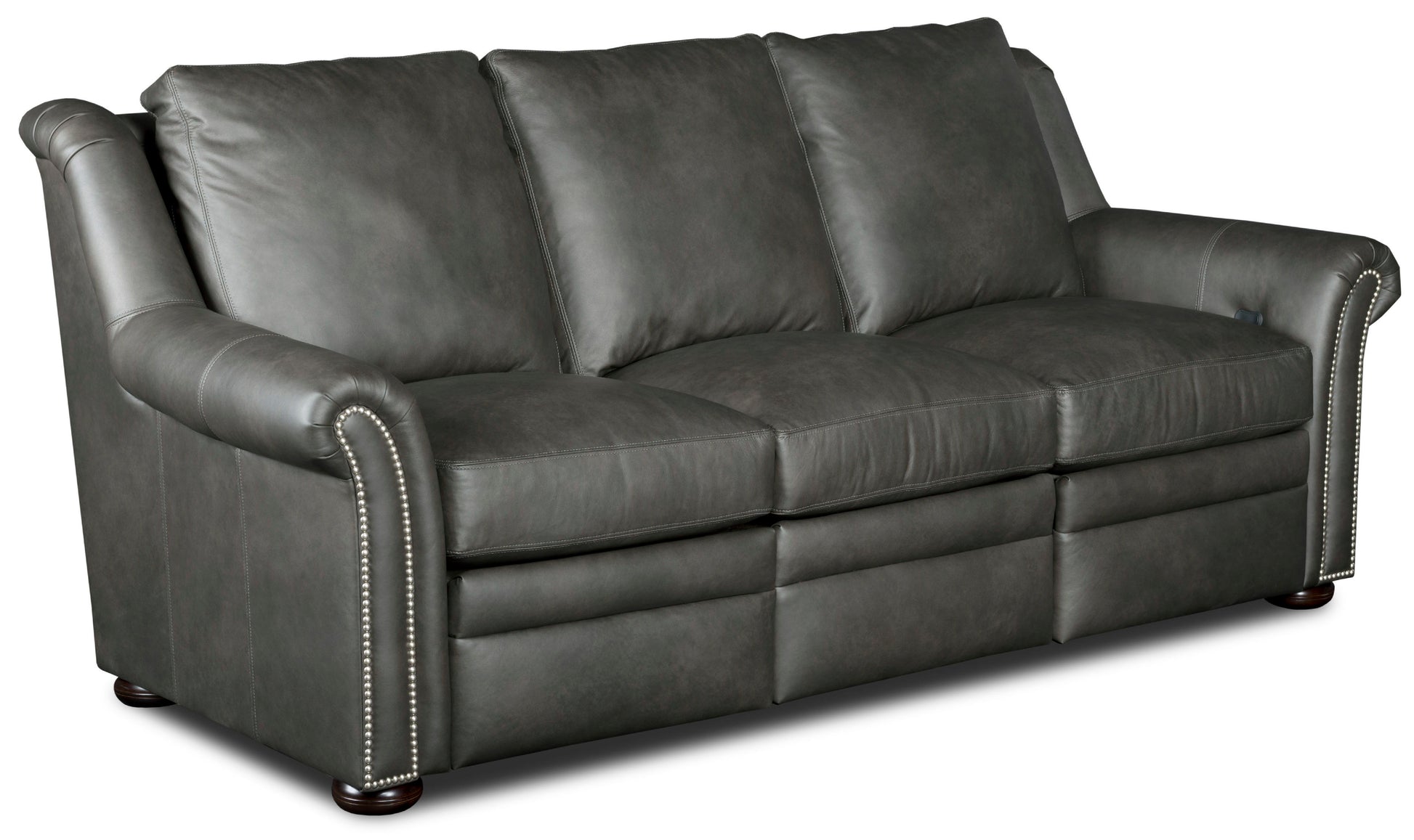 The Newman Sofa with Full Recline at both arms is available in your choice of hundreds of leather and fabric selections. This style features semi-attached backs and Spring Down seat cushions. This style comes standard with Mahogany finish and #9 Natural Nailhead trim although any of our wood/nail finishes can be ordered with no additional cost. This style is standard with a Motion Power Button and a Battery Pack is available for an upcharge.