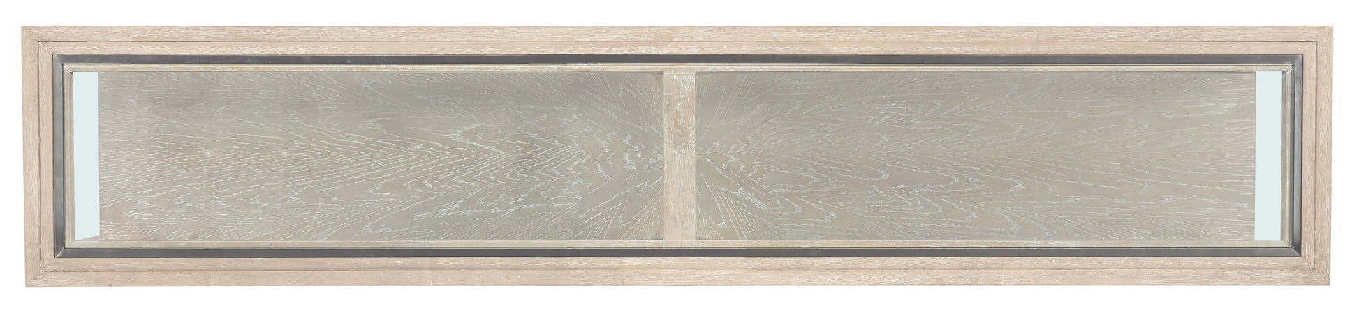 A brilliant blend of materials, the Nouveau Chic Rectangle Console Table combines Oak Veneers, tempered glass and a metal frame. The beveled-edge glass top looks down onto the middle wood shelf and bottom shelf featuring a dramatic sunburst veneer pattern. Finished in the serene Sandstone finish with light wire brushing for tactile appeal. With a slim 16-inch depth, this piece adds design and function to even tight spaces.