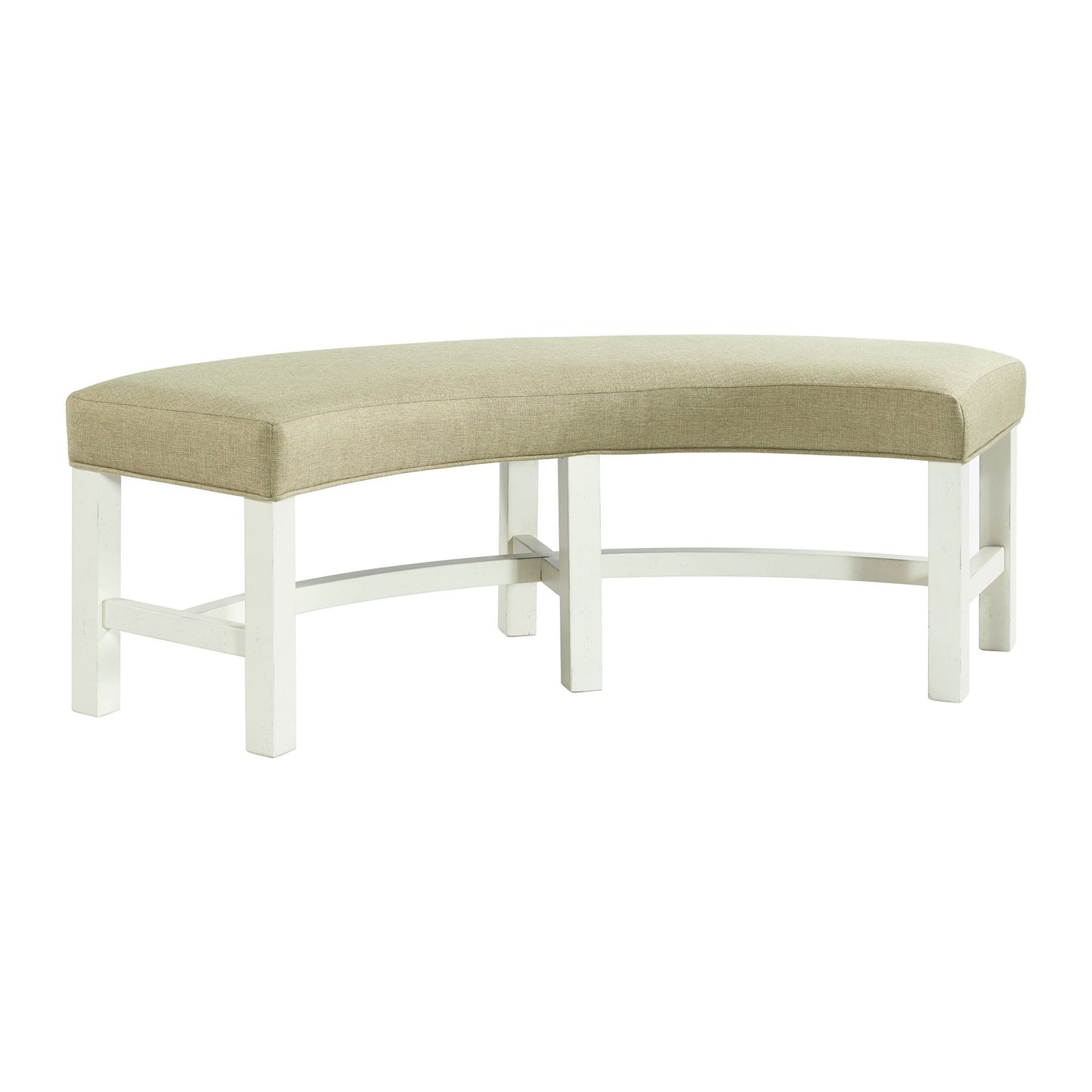 The Park Creek Round Bench will look amazing in your dining room! This bench features a taupe upholstered seat with cottage white finish on the base. If you are looking for a family-style seating arrangement, this bench is for you. The semi-round shape seats up to two people comfortably. The simplicity of this piece will fit perfectly in a dining setting or a kitchen nook. Also, check out the round dining table in this collection that pairs with this bench.