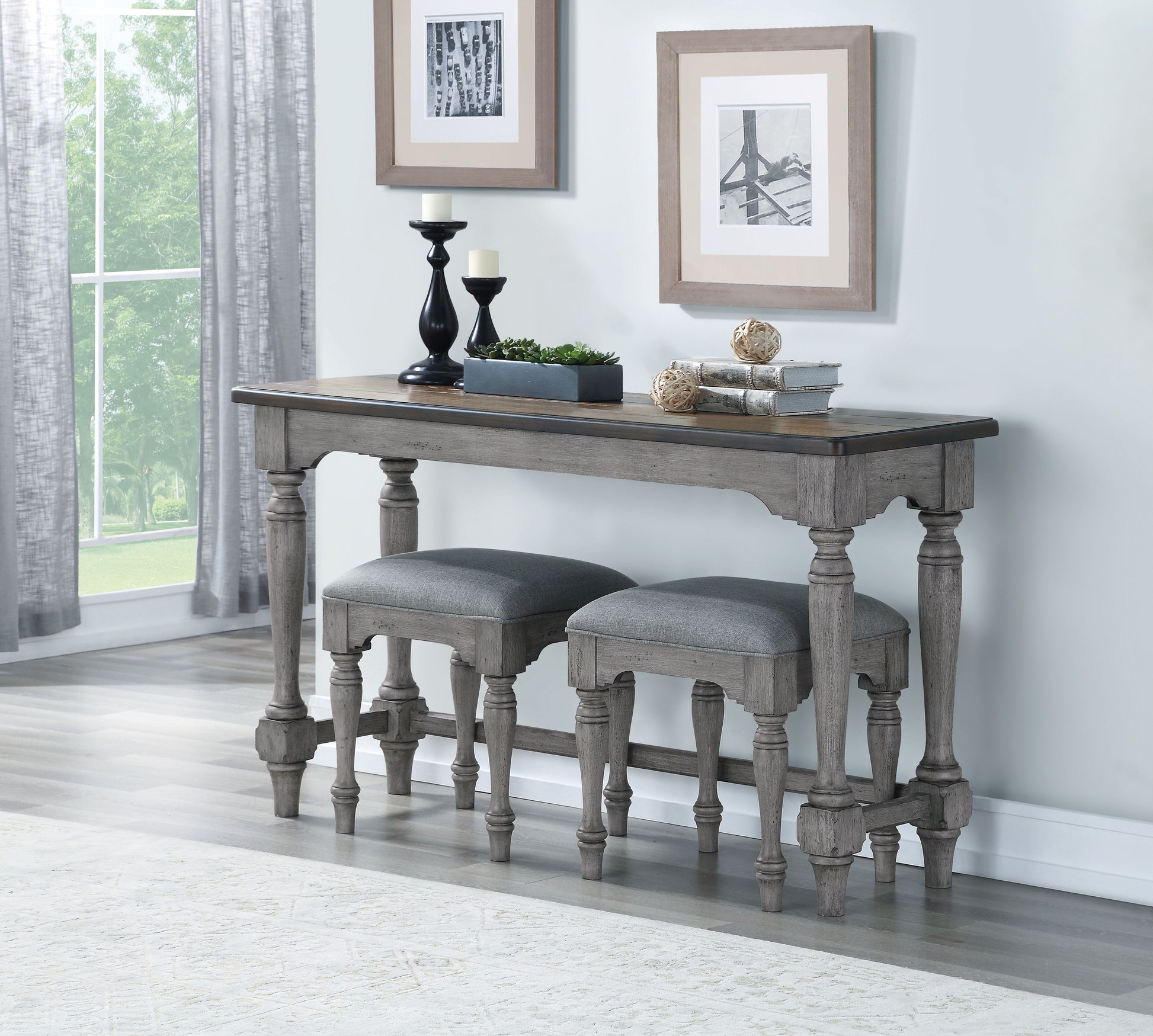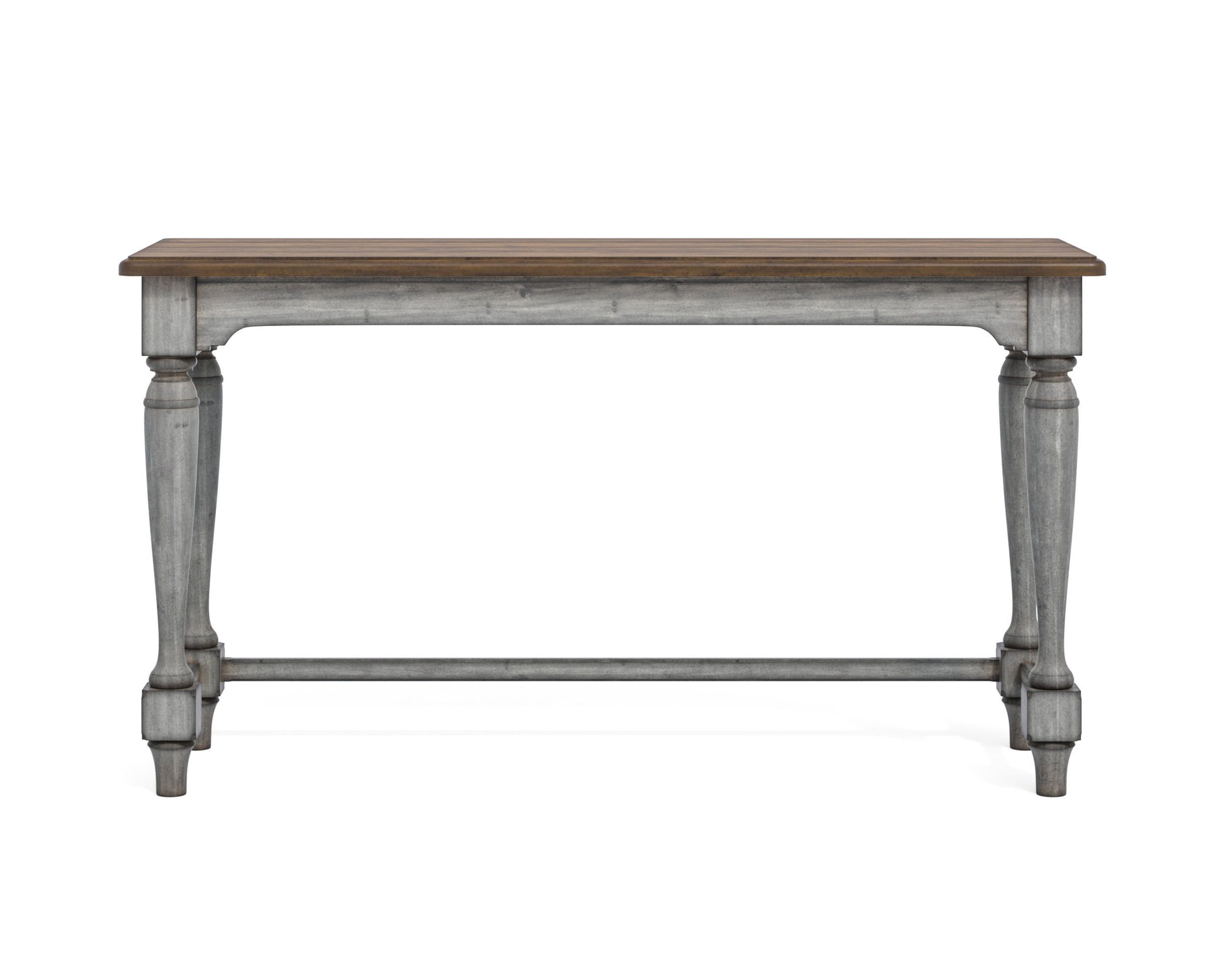 Capture the relaxed charm of an inviting, cozy cottage with the Plymouth sofa table, which fits perfectly behind a sofa, loveseat, or along a wall. A weathered graywash finish, medium brown planked top and turned legs offer vintage character that will enhance the look of any living space.