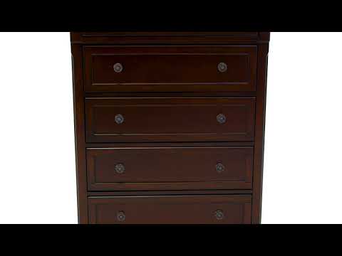 The quality craftsmanship is clear to see. The classic design elements—including antiqued hardware and bun feet—are easy to love. Satisfying your taste for traditional furnishings, this chest of drawers is elegant without looking fussy. Five roomy drawers keep your wardrobe organized in style.