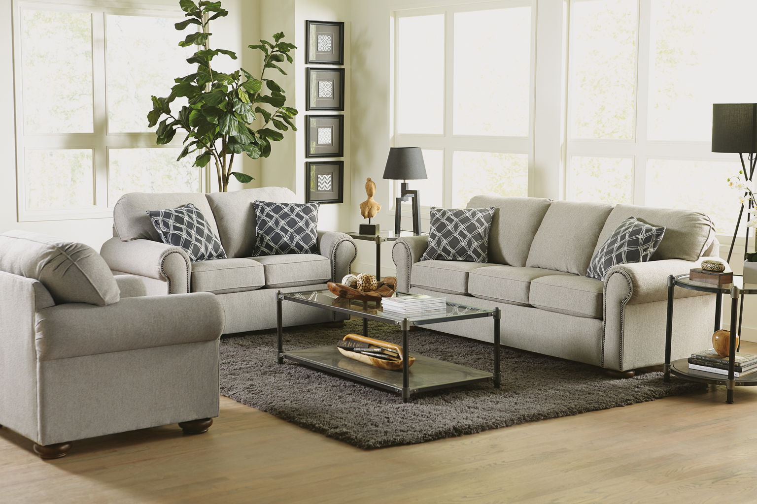 Inviting details on an attractive frame. Smooth edges, oversized rolled arms, and exposed round bun feet give Preston classic appeal as a living-area staple. This sofa features welt cording trim on the back and seat cushions with nailhead trim for an elegant touch. Backed by lifetime guarantees, the style and comfort of Preston will be enjoyed for years to come.