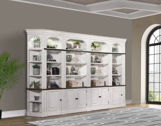 Provence - 6 Piece Modular Open Bookcase Library Wall - Vintage Alabaster