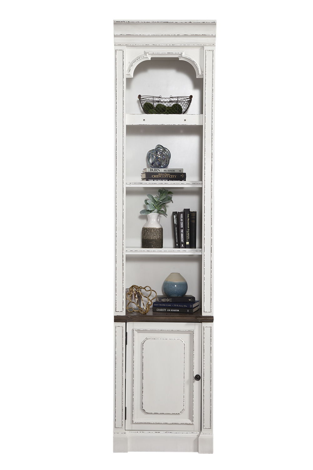Create your dream library wall with the addition of this 22-inch open top bookcase from Provence. Perfect for storage and display, it features a weathered Vintage Alabaster finish and updated traditional styling.