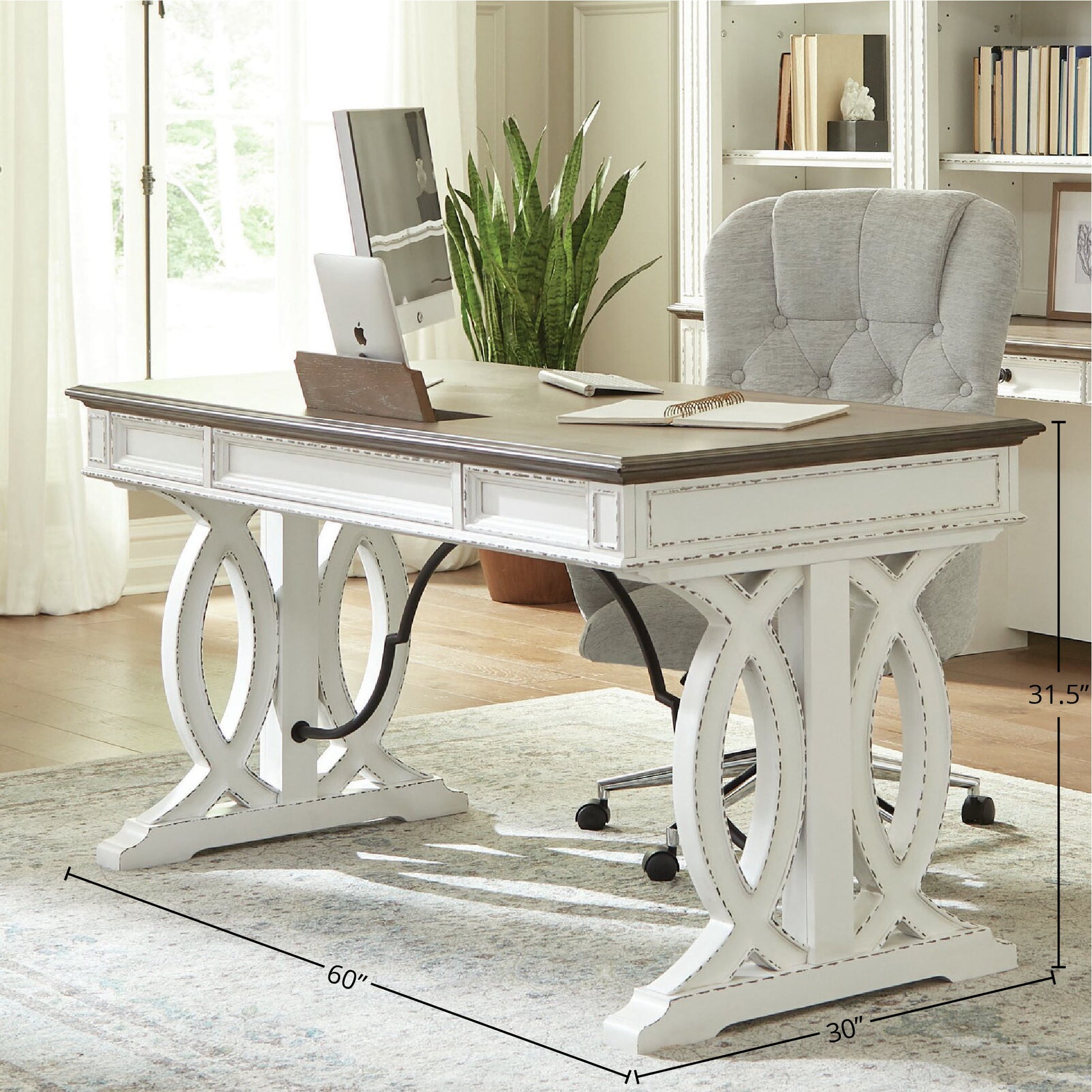 Whether you're working from home or organizing bills, you'll love the beauty and functionality of the Provence writing desk. Functional by design, it also boasts a weathered Vintage Alabaster finish and updated traditional styling.