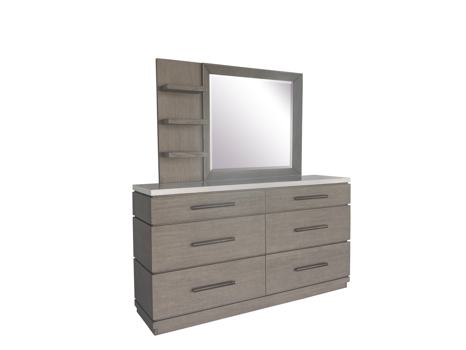 Pure Modern Bedroom - 6 Drawer Dresser And Mirror - Moonstone