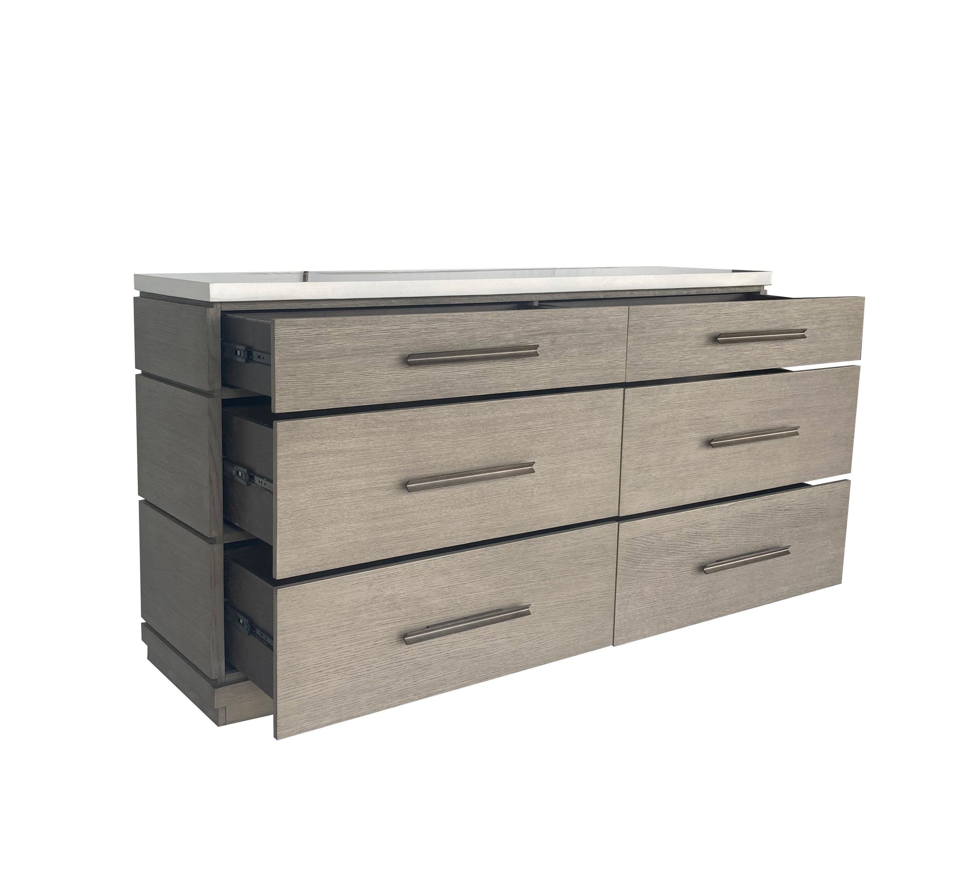 - Full-extension drawers are supported by ball-bearing glides