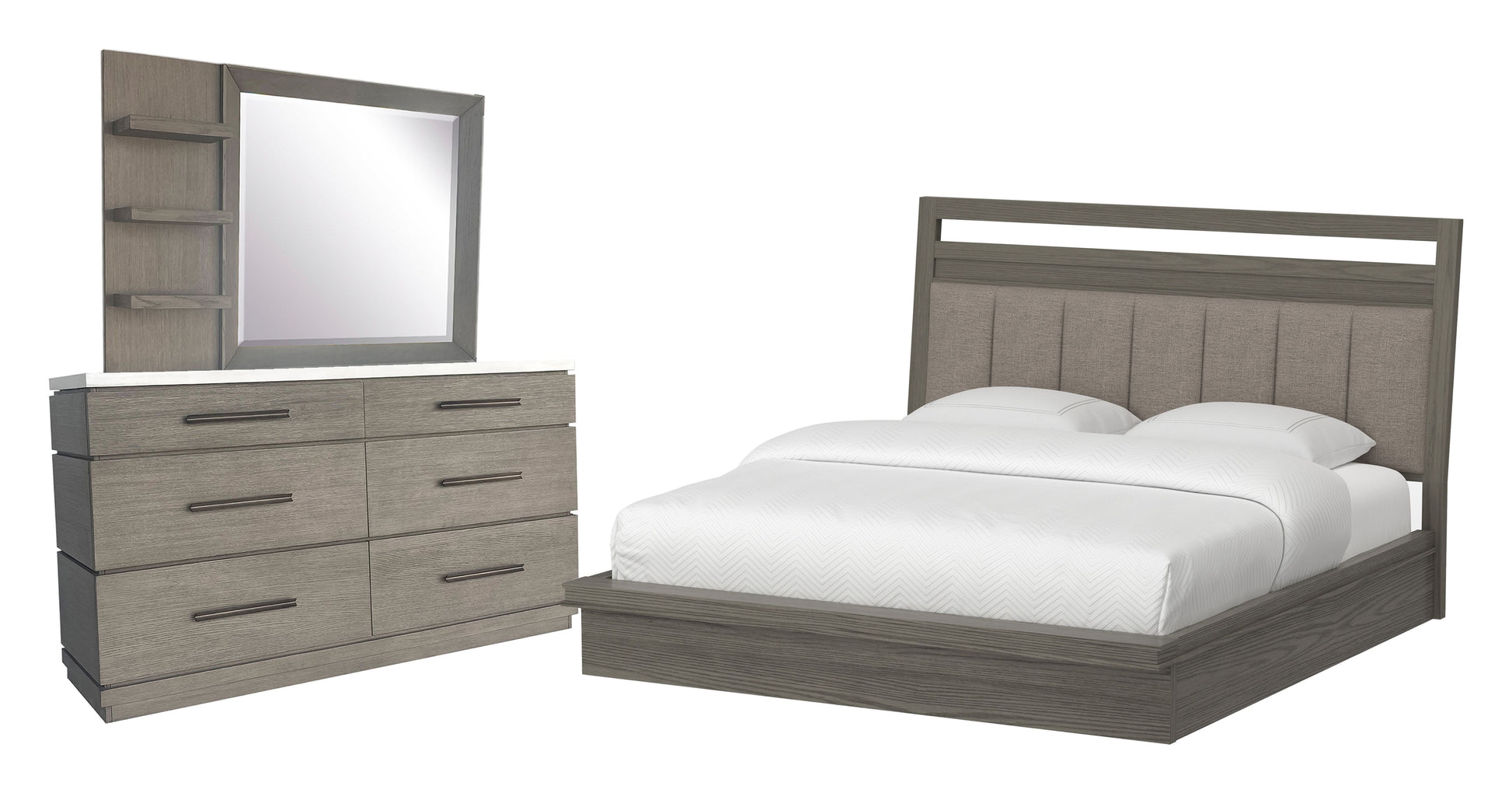 Pure Modern - Bedroom King Platform Bed With Dresser And Mirror - Moonstone