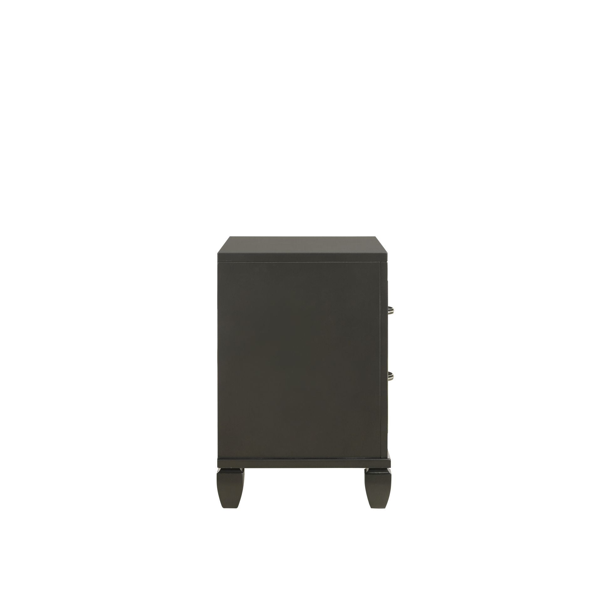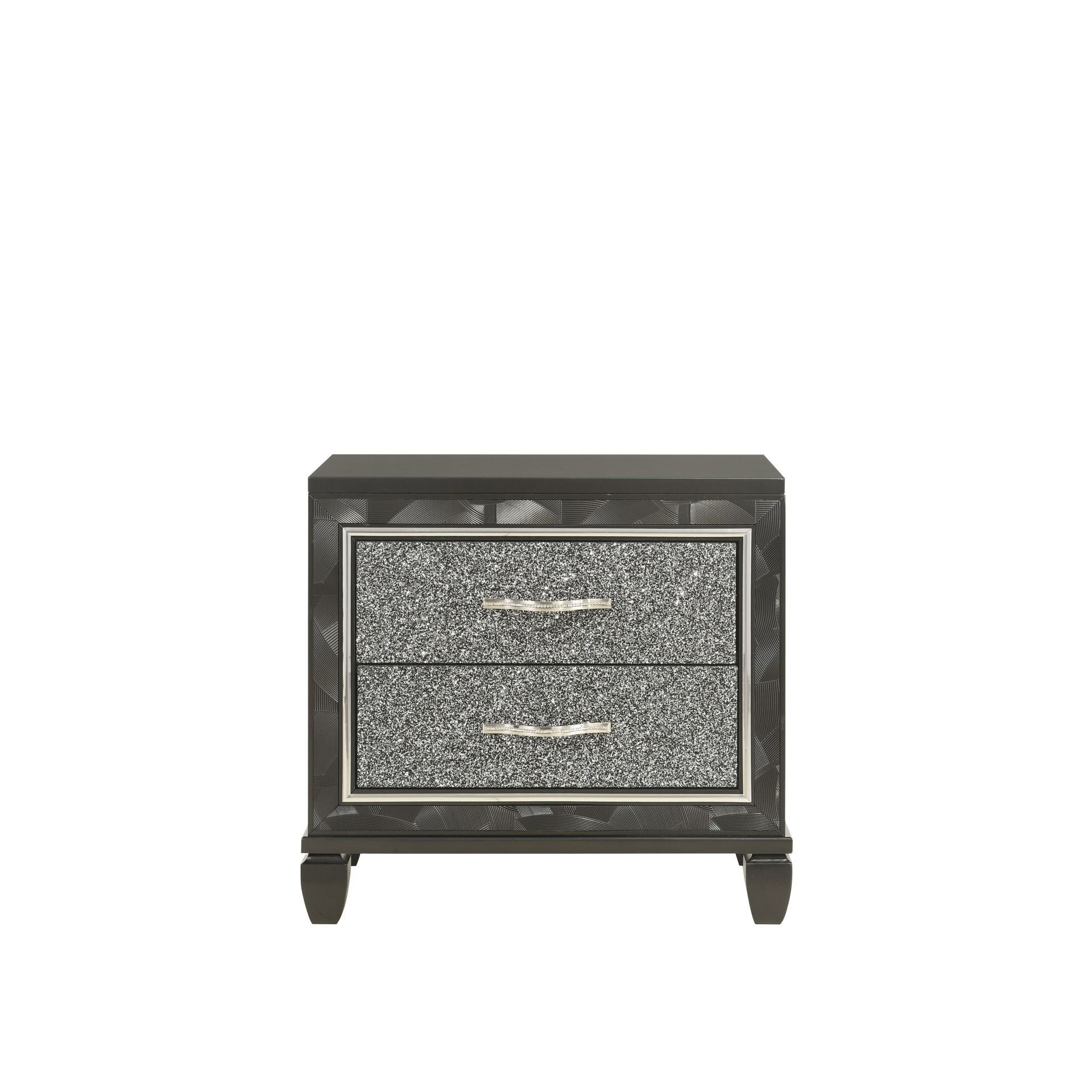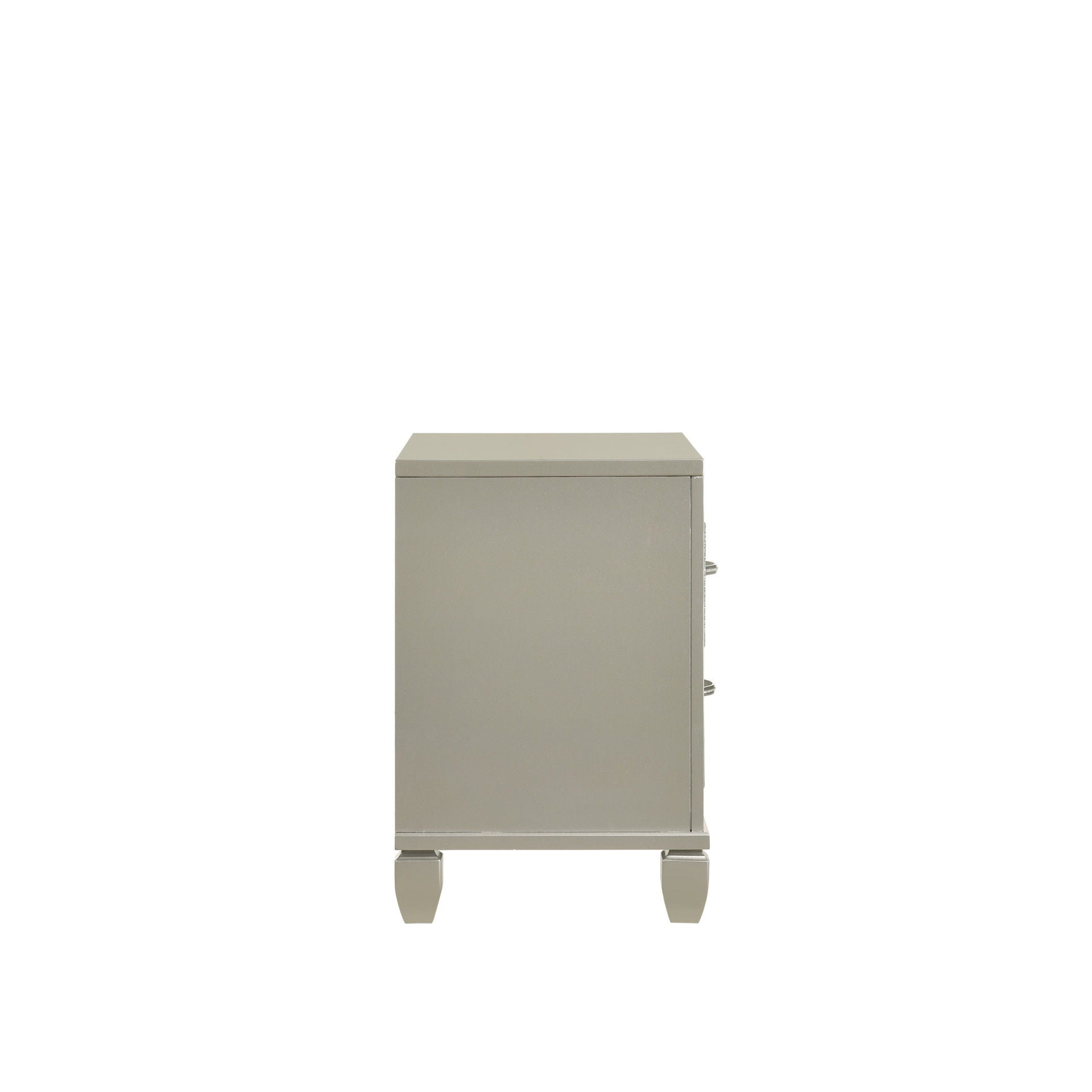 The Radiance Bedroom Collection is a mesmerizing blend of modern elegance and glamorous charm. Crafted with solid wood and MDF, this collection ensures durability and stability. The striking silver finish adds a touch of sophistication to each piece. The headboard, made of 80% faux leather and 10% cotton, creates a luxurious focal point in the room. The brushed steel face framing and glittered drawer fronts add a dazzling allure. The chrome pulls with rhinestone inlays exude opulence and style. The felt-lined top drawers provide a soft surface for delicate items, while the finished drawer interiors showcase meticulous attention to detail. The English dovetail construction and full extension ball-bearing glides ensure smooth and reliable operation. The crystal tufted, lighted headboard and mirror add a radiant ambiance to your space. With the Radiance Bedroom Collection, elevate your bedroom to new heights of elegance and glamour.