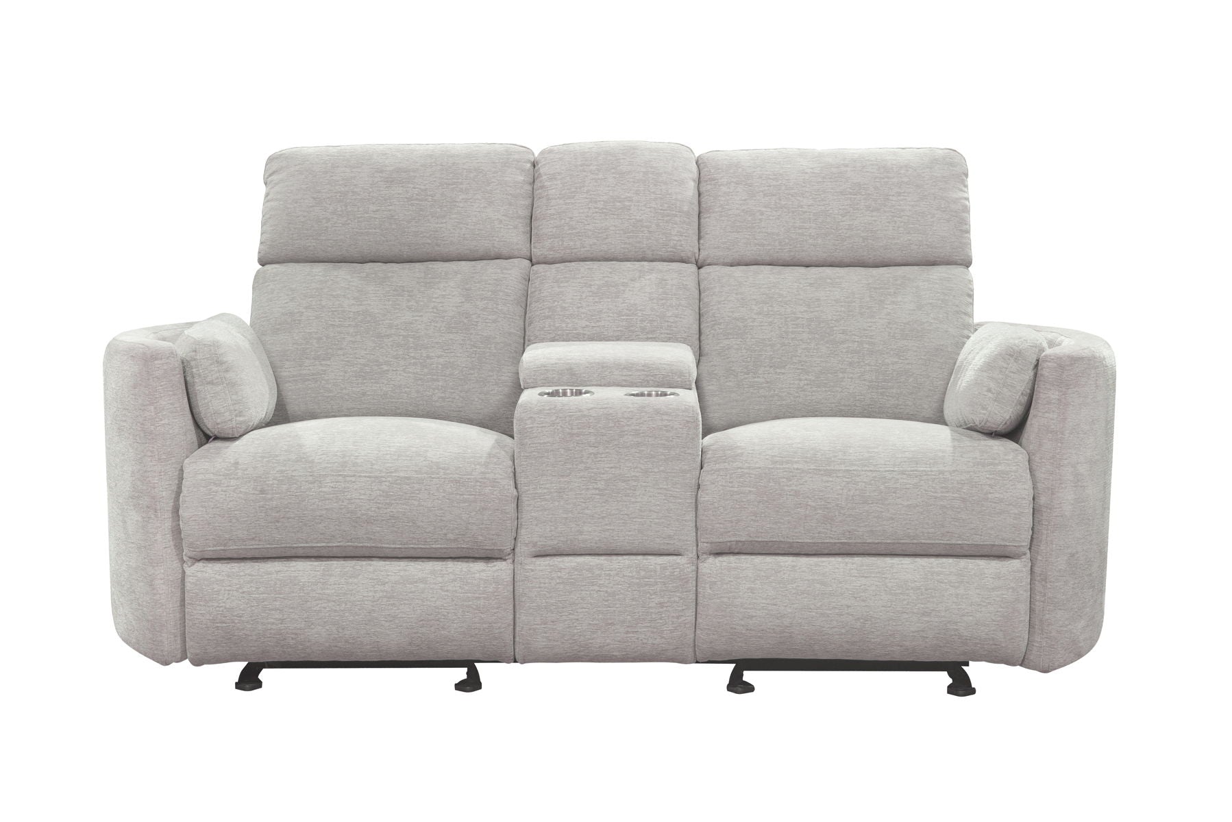 - Glider loveseat recliners with storage console, drink cup holders, and wireless charger