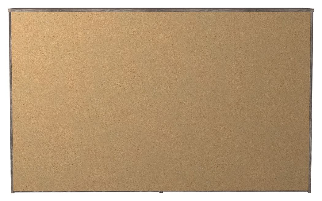 Rustic warm gray finish over replicated Oak grain with authentic touch. Large dark pewter color handles with an aged appearance accent cases. Drawer interiors lined with a replicated linen design for a clean, finished look. Side roller glides for smooth operating drawers. Mouldings across headboard give a thick planked look. Queen (71) and king (72) headboards can attach to a bolt-on metal bed frame B100-31 or B100-66 respectively. Safety is a top priority, clothing storage units are designed to meet the most current standard for stability, ASTM F 2057 (ASTM International). Drawers extend out to accommodate maximum access to drawer interior while maintaining safety.