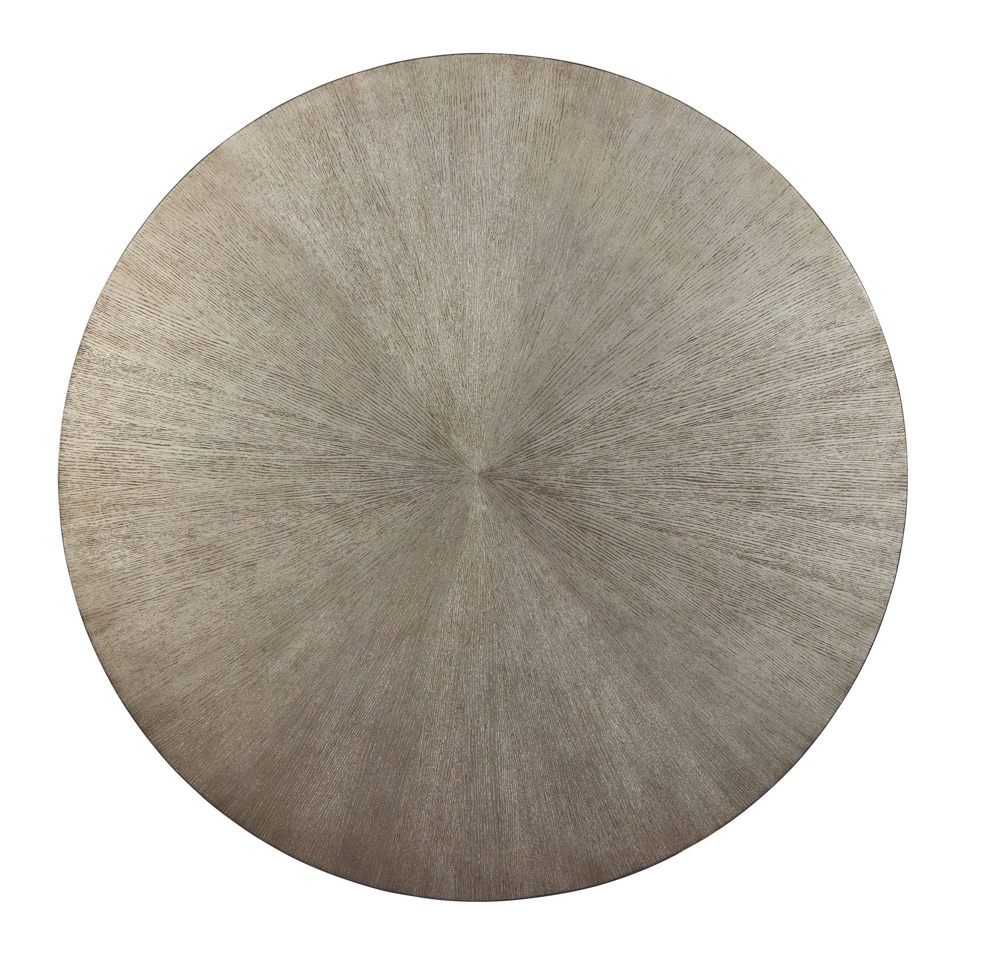 With the addition of a striking accent piece, one can take any room from ordinary to extraordinary. And this round coffee table has just what it takes to elevate your home's decor to astonishing new heights. Made with wood veneer in a warm metallic silvertone finish and complemented by metal tubular legs, its artful composition and spartan design mesh seamlessly into any modern living space.