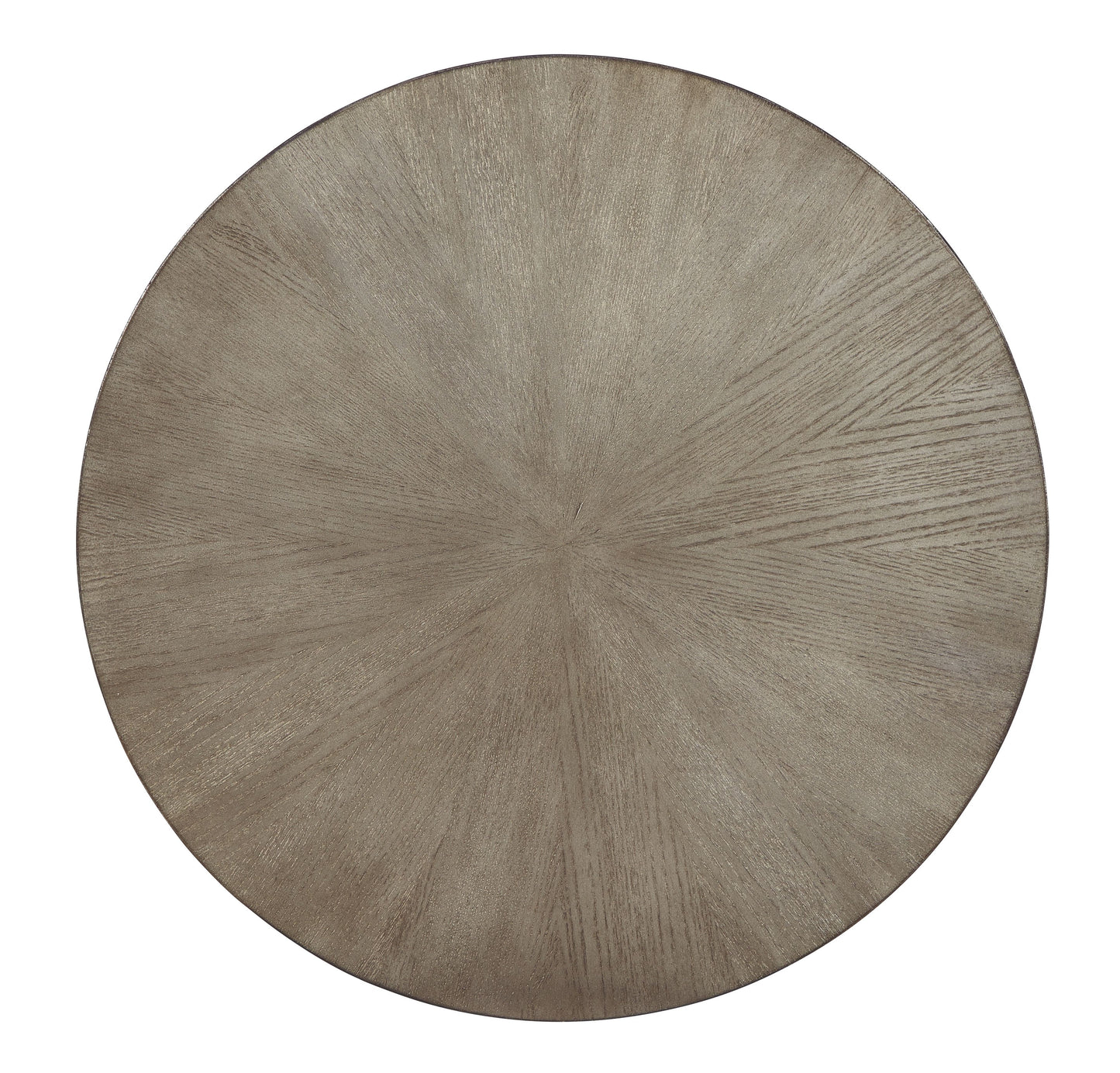 With the addition of a striking accent piece, one can take any room from ordinary to extraordinary. And this round accent table has just what it takes to elevate your home's decor to astonishing new heights. Made with wood veneer in a warm metallic silvertone finish and complemented by metal tubular legs, its artful composition and spartan design mesh seamlessly into any modern living space.