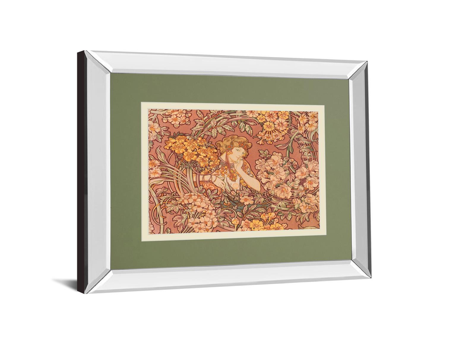 Redhead Among Flowers By Alphonse Mucha - Mirror Framed Print Wall Art - Pink