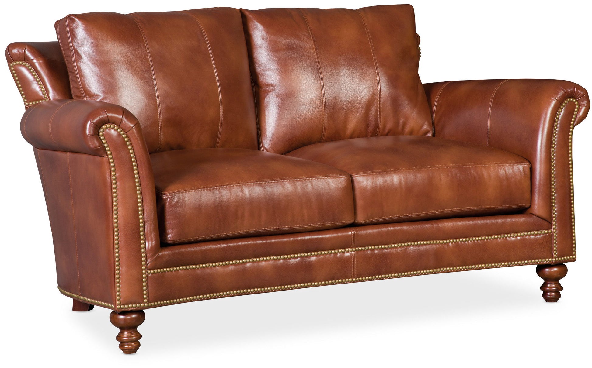 The Richardson Stationary Loveseat 8-Way Tie is offered in hundreds of leather options. The standard Nailhead Trim #9 in Natural Finish. Other decorative nailhead finishes available at no additional cost. It comes standard in a Mahogany finish. Other finishes available at no additional cost.