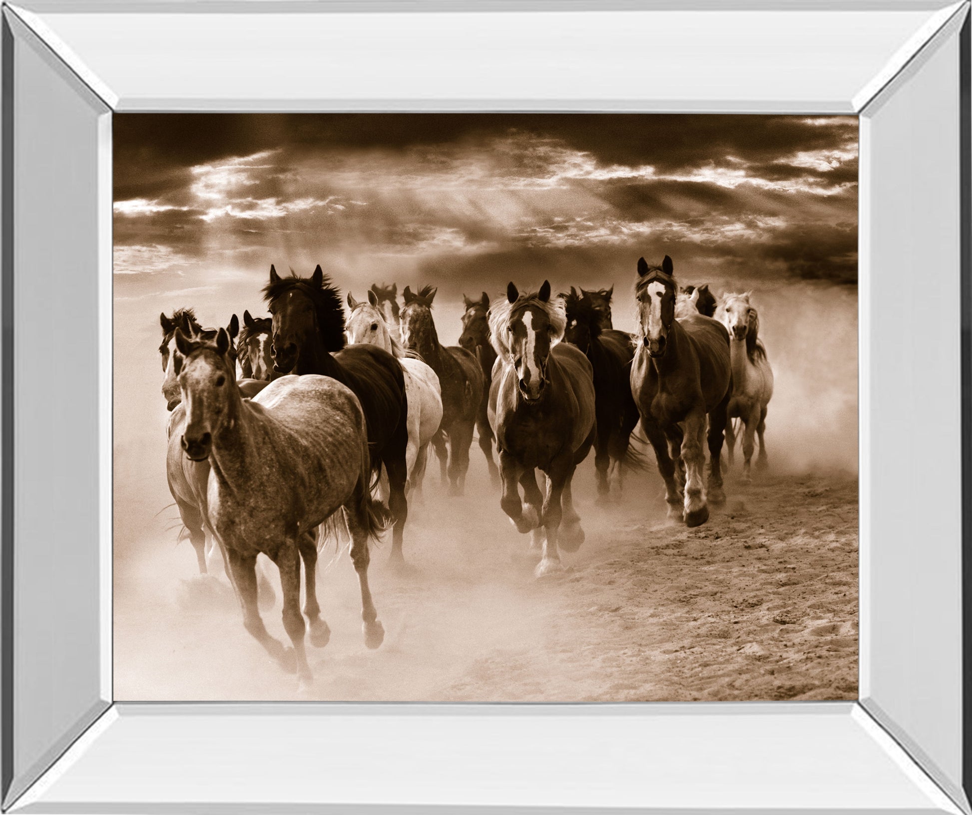 Running Horses By Monte Naglar - Mirror Framed Photo Print Wall Art - Dark Brown