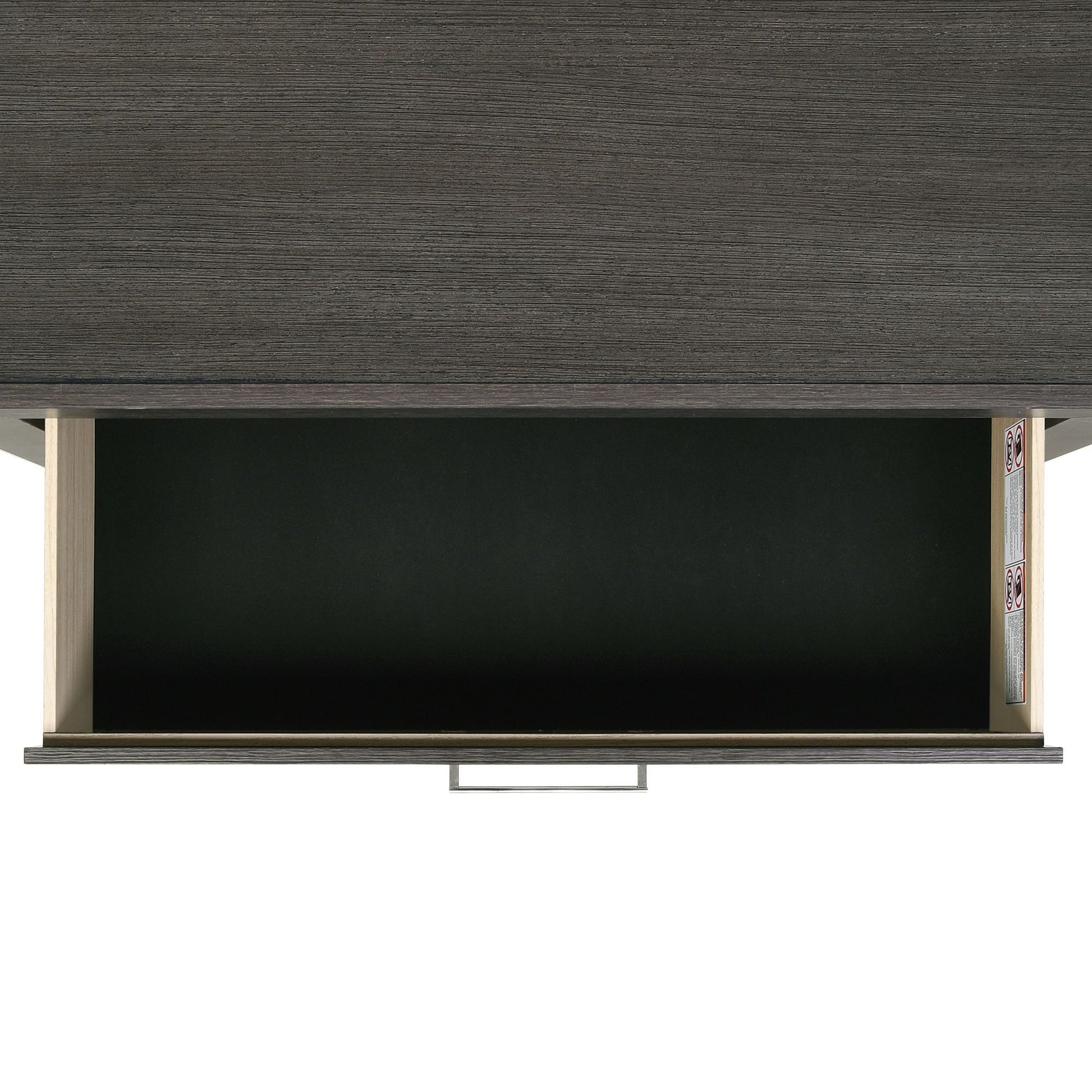 Sasha 5-Drawer Chest is going to look sensational in your home! This standard vertical chest offers five spacious drawers for storing away your belongings. The top drawer is felt-lined, making it easy to store away your more delicate belongings; while the bottom drawer has a dust proofing layer to help protect your belongings. The dark gray finish pairs beautifully with the chrome drawer pulls, elevating this look to the next level. The paper veneer features a wood grain like detailing that takes this bedroom staple to the next level. Add this chest to your home today for a look that you will love to come home to, day after day!