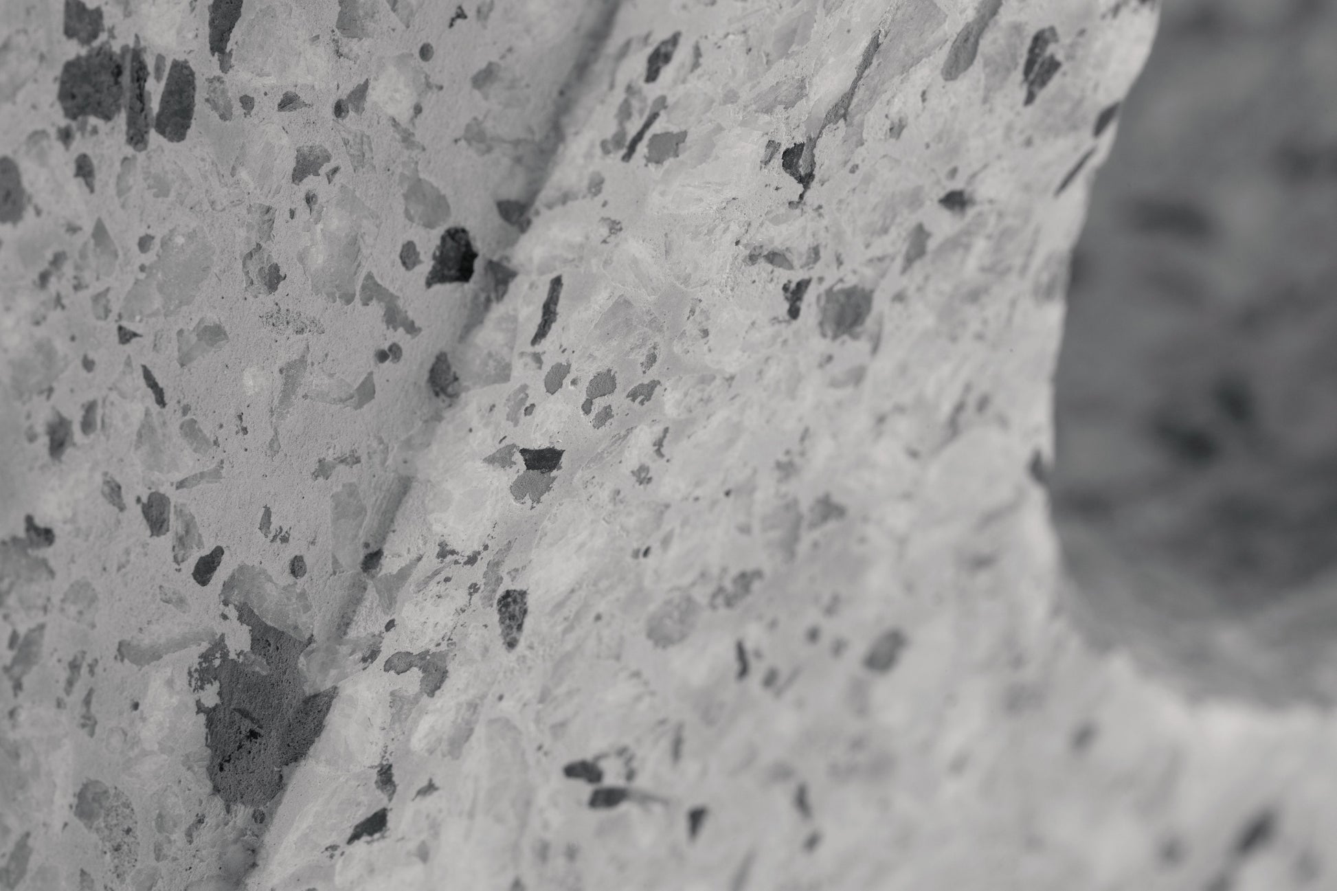 Bring a shelf, table or desk full circle with a cool touch of contemporary art. With its black and white marble flecks, this cement sculpture is striking from every angle.