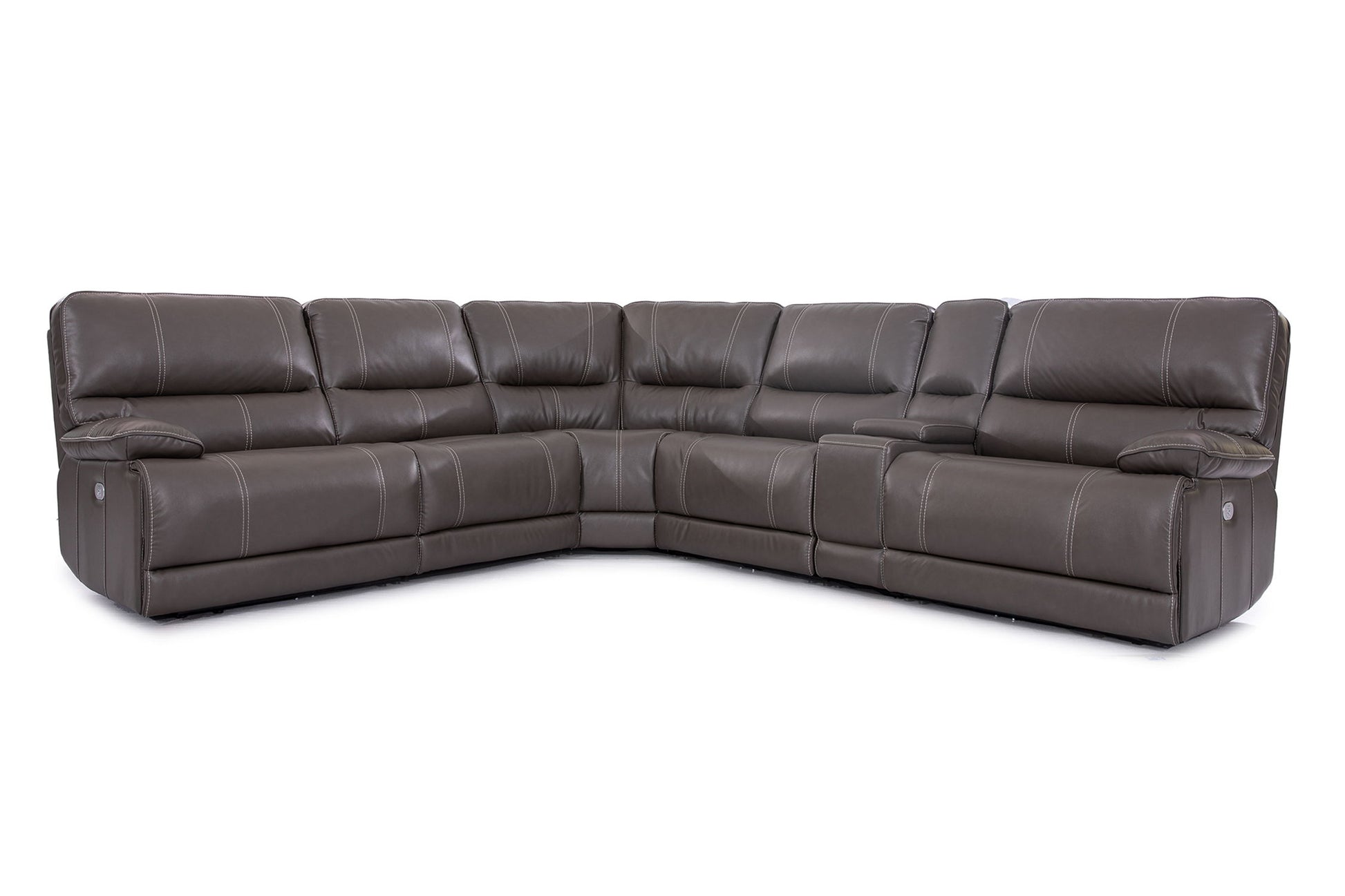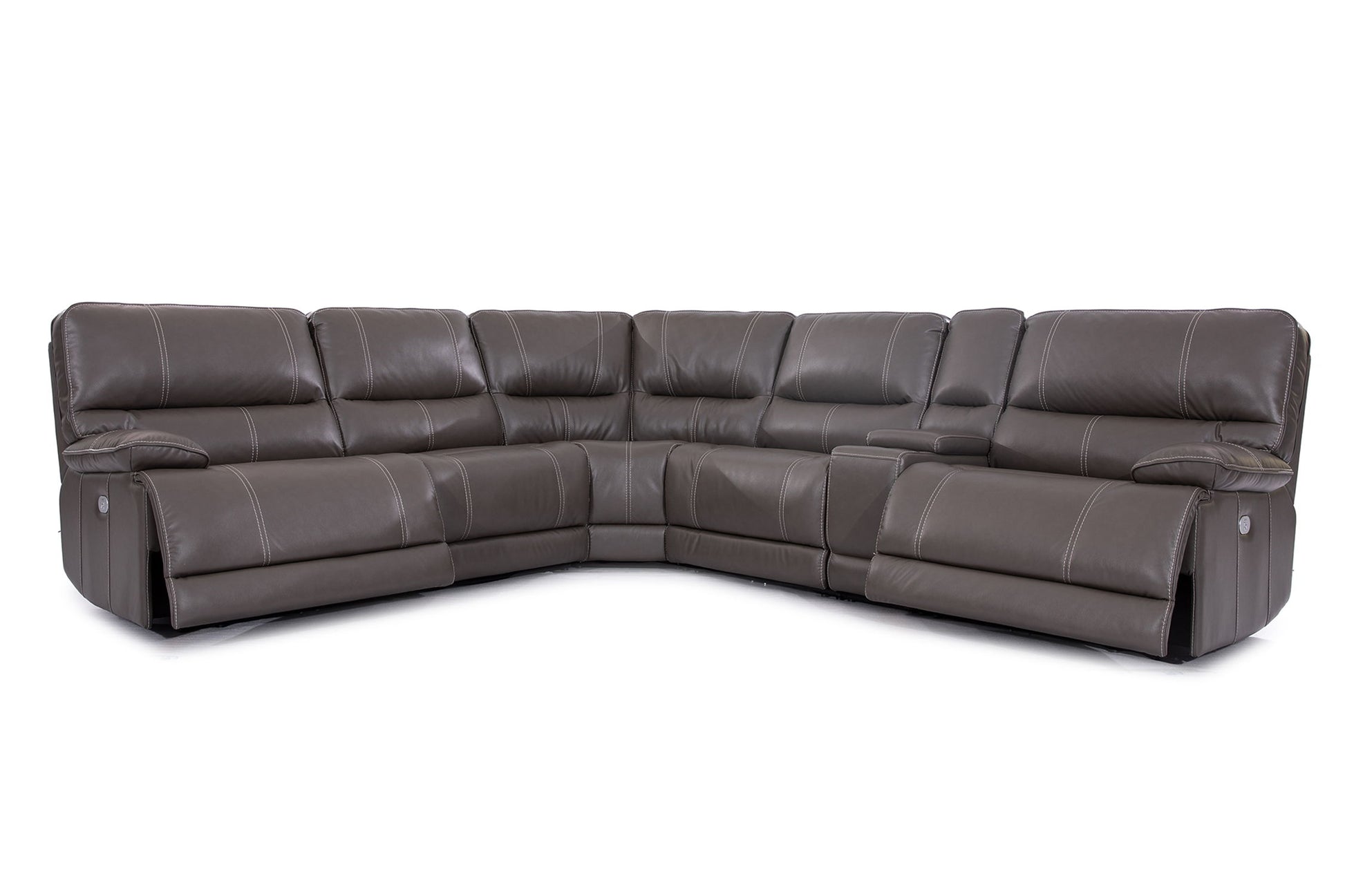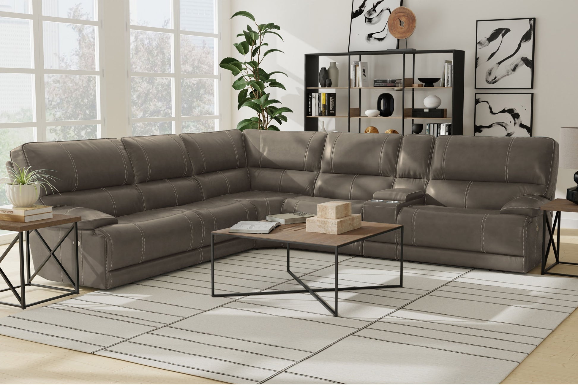 Shelby - 6 Piece Modular Power Reclining Sectional with Power Headrests and Entertainment Console - Cabrera Haze