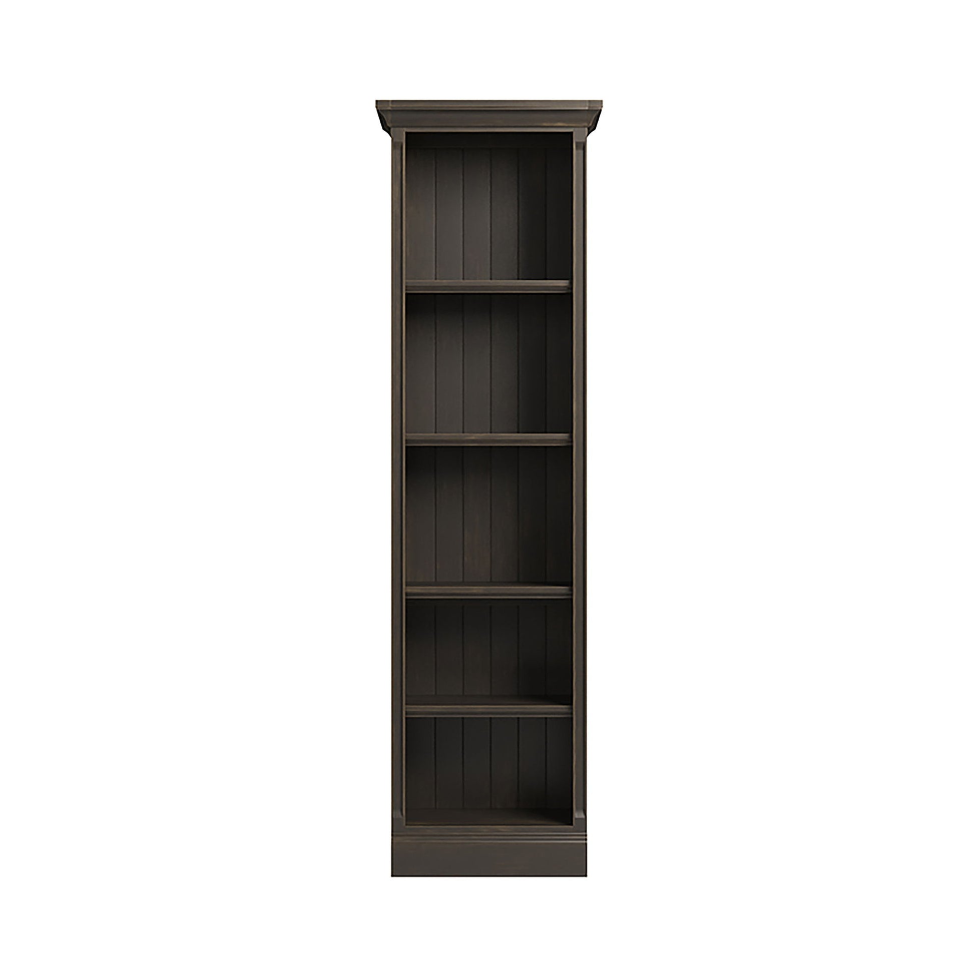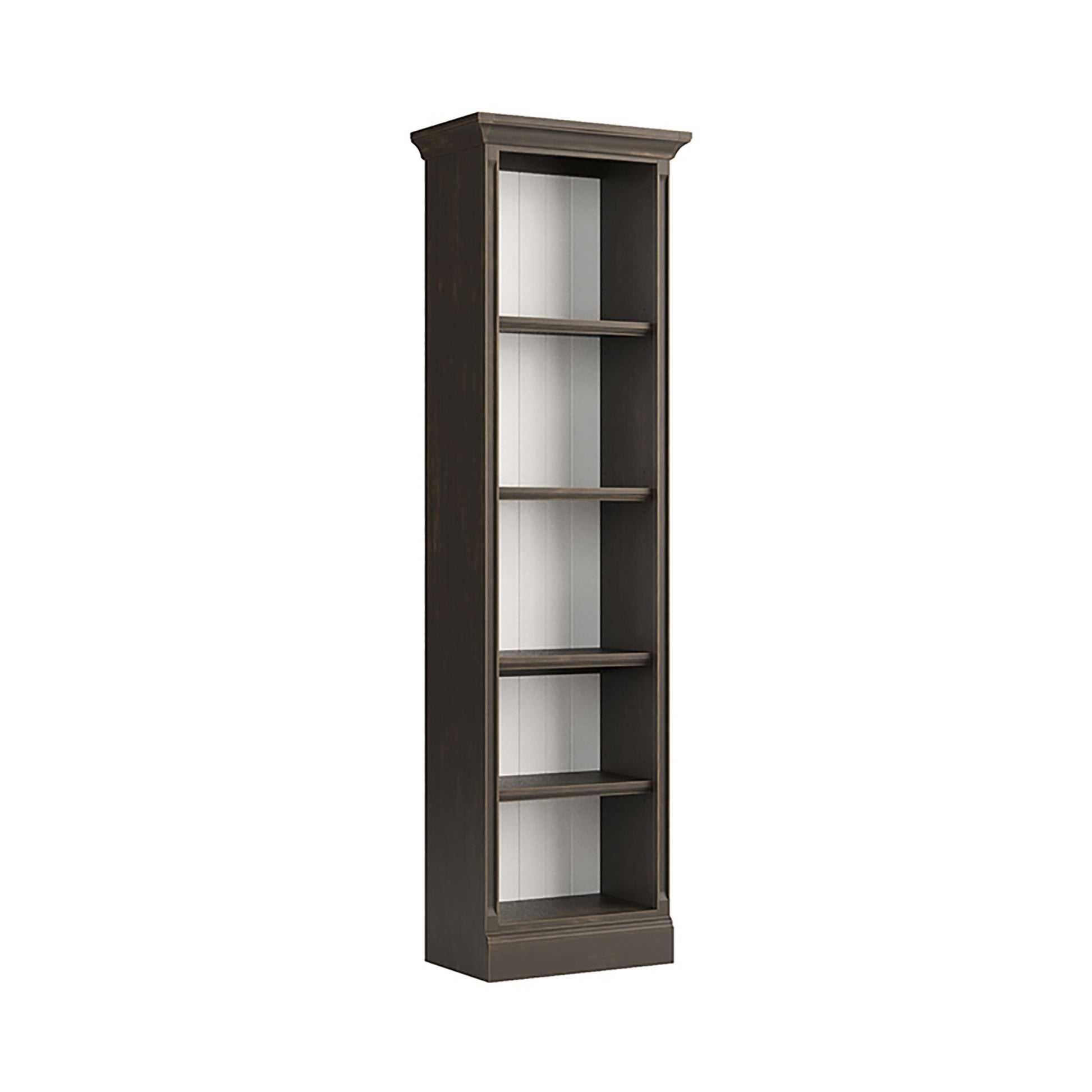 This bookcase provides the perfect blend of style and functionality. The gorgeous effortless white finish over birch veneers is contrasted by a medium roast brown finish and accented with burnished nickel hardware, creating a unique and eye-catching piece that is sure to elevate any room. The back panels can be reversed for two distinct looks, and the removable side crown moldings allow bookcases to be bunched together for a more customized and cohesive look. Whether you're using it in your living room, home office, or bedroom, our bookcase provides ample storage space for your books and decor while adding a stylish touch to your home.