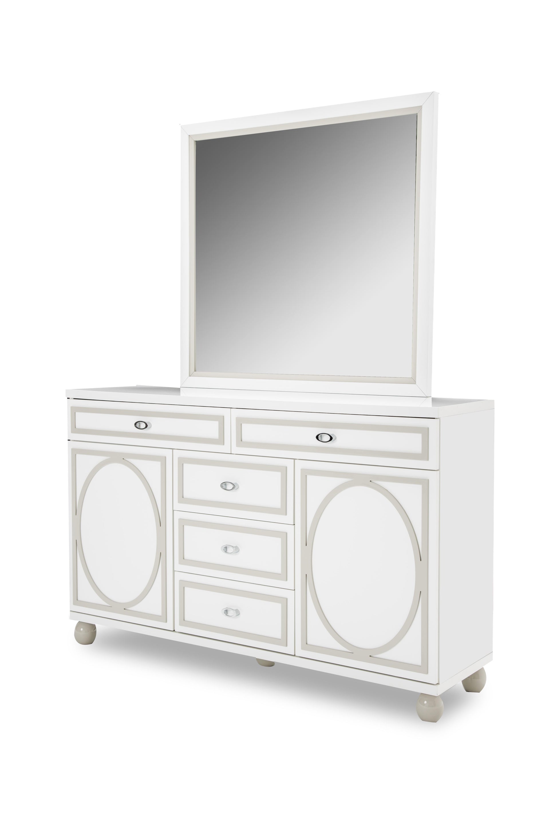 Sky Tower - Dresser with Mirror - Cloud White
