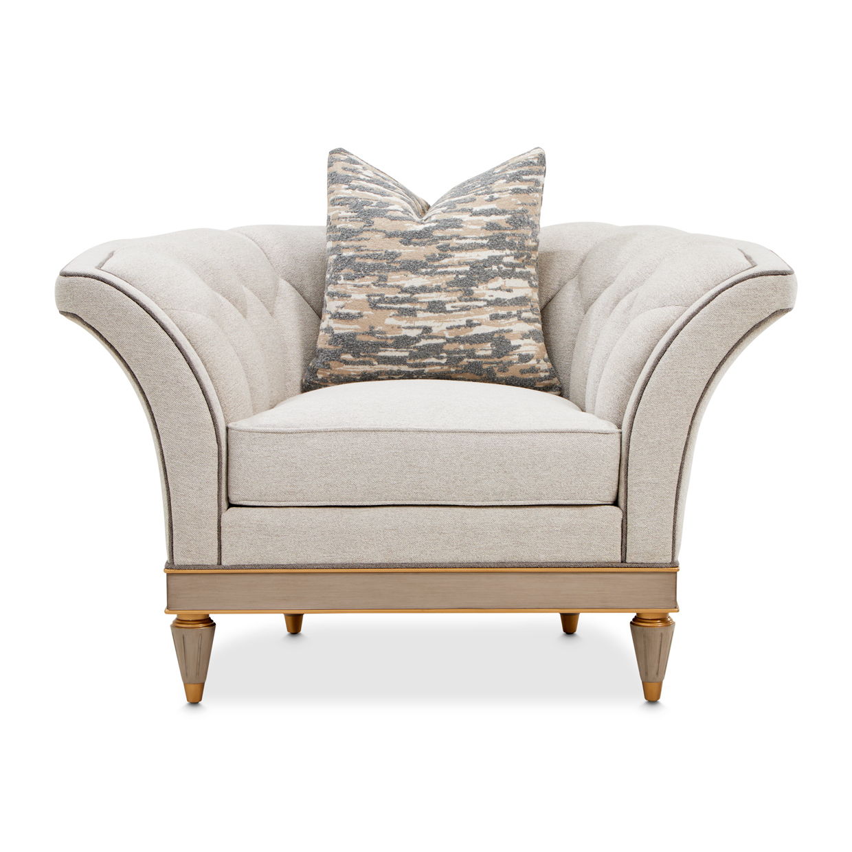 The St Charles Chair combines the soft curves of a classic frame with modern fabrics to create a transitional piece to fit in any home. There is a hit of whimsey in the quilted back and welcoming warm gray fabric adorned with a contrast welt.