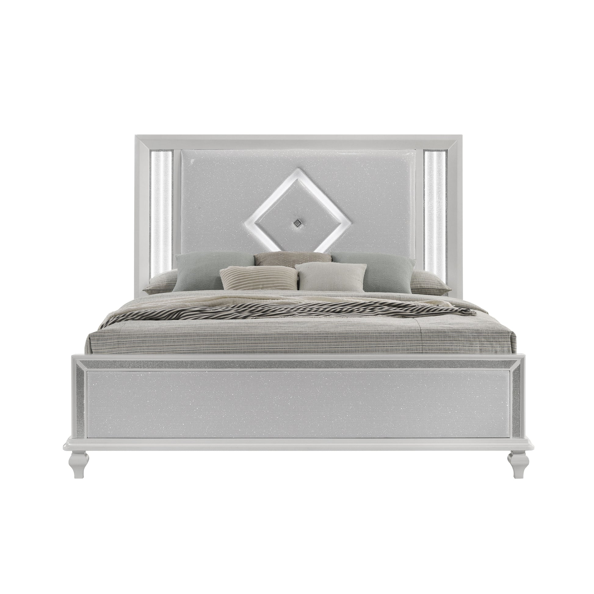 Experience the allure of the Stardust Bed, a masterpiece of modern luxury for your bedroom sanctuary. Crafted with durability in mind, this bed boasts a strong and eco-friendly construction of manufactured wood with a sleek finish, adorned with glittery silver accents for a touch of glamour. The sparkling Poly/Cotton fabric exudes star-like luster, complemented by shimmering crystal hardware, while LED lighting sets the mood and illuminates its captivating style. With diamond style accents, silver mylar trims, and accent lighting, this bed is a bewitching addition to any indulgent bedroom decor, offering unparalleled sophistication and charm.