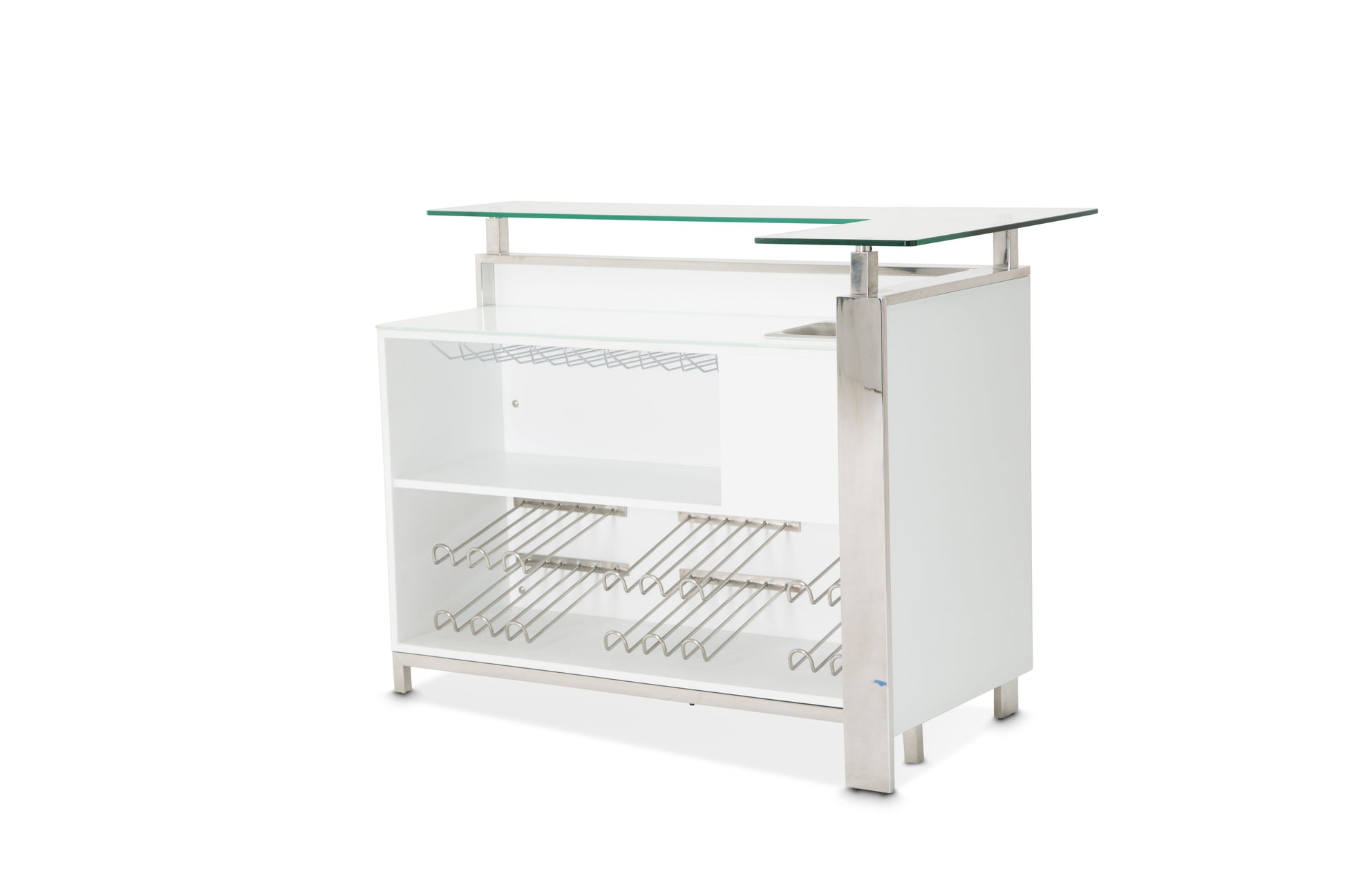 Make a home uniquely yours with the State St. Bar. Whether you want a beautiful bottle rack, like to serve guests with style, or need the perfect wine glass display, this bar is for you. Standing at 42.25 inches high, this piece features glossy white tempered glass and a clean, contemporary look.