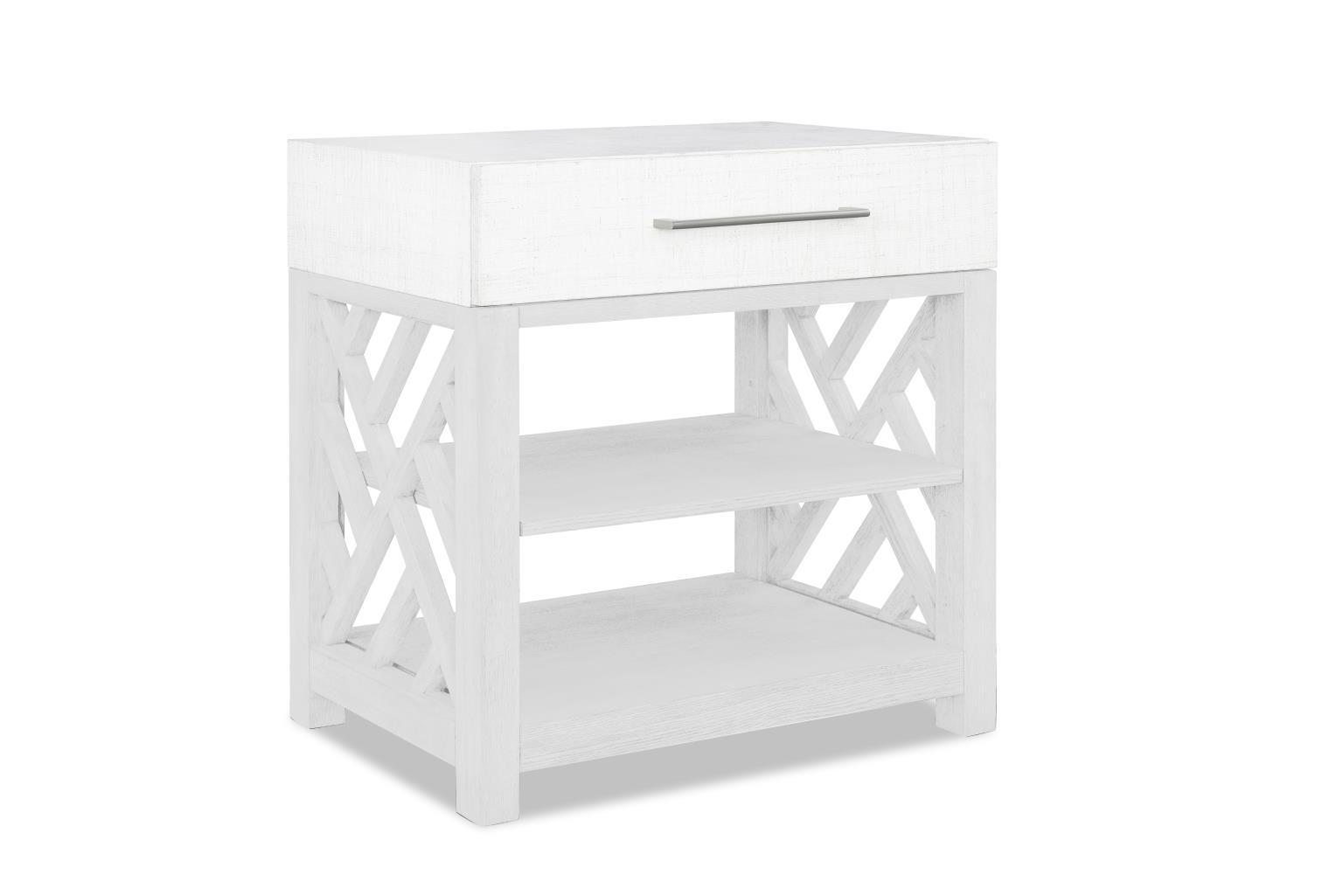 Updated coastal point-of-view can be used by the beach down the shore at the lake or wherever your Staycation takes you. Quartered White Oak takes on dramatically different feels depending on which of the finishes you choose. Painted linen drawer fronts and accents add texture and are also used as backing and under fretwork. Clean contemporary brushed nickel hardware nicely offsets the natural finish tones of Haven and Driftwood. Box-on-stand design adds unique depth and dimension to the cases. Beautiful Chippendale inspiration is evident across the fretwork.