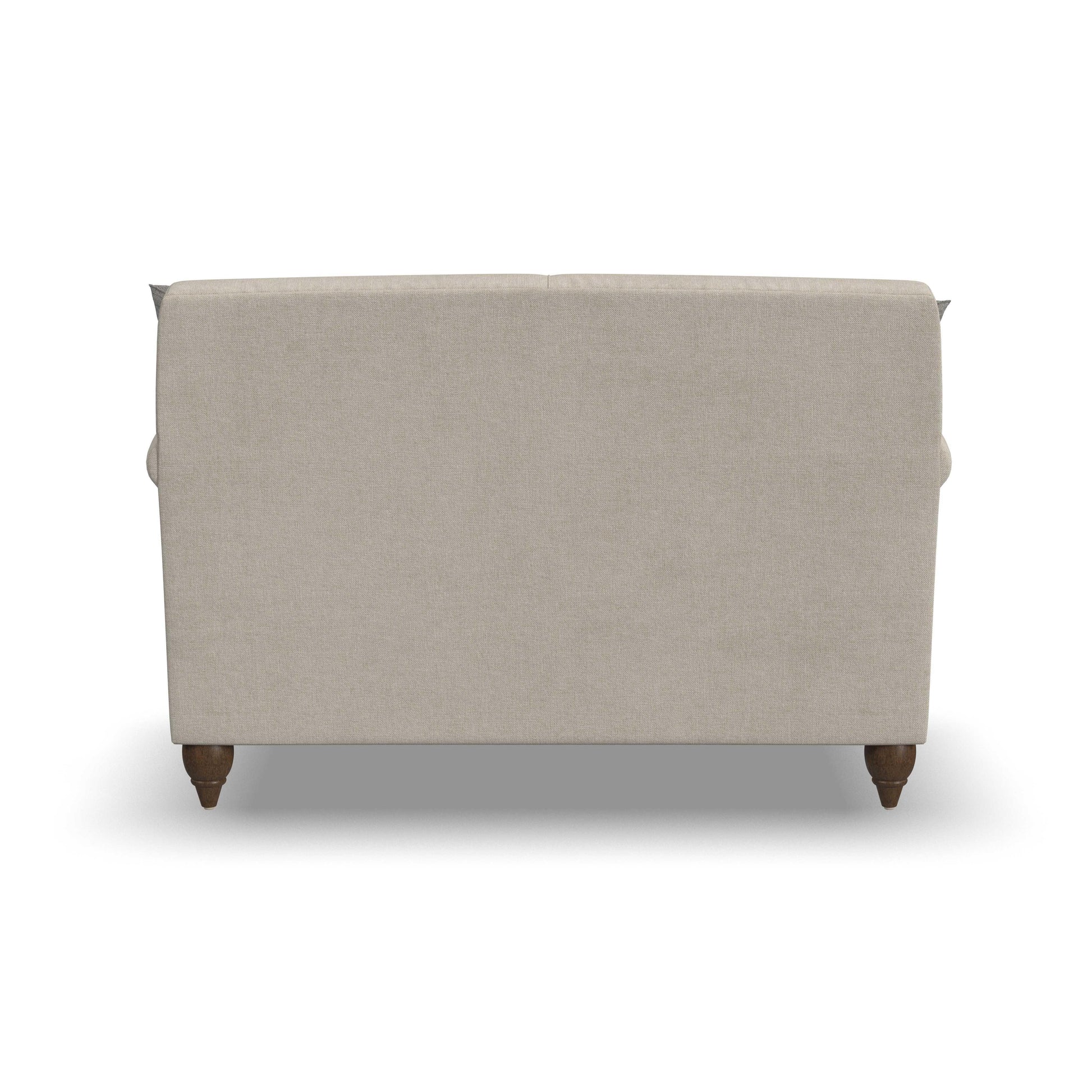 Whimsical elegance. The perfect elegant piece to accentuate your home, the picturesque petite roll arms of the Stella loveseat invite you in. Take a seat atop removable and reversible cushions that are supported by our patented Blue Steel Spring system – backed by our lifetime guarantee. Handcrafted with a durable frame and upholstered with careful detail, Stella is designed to last. The tight back and turned wood legs give this quaint loveseat a modern flair. And with two accent pillows in your choice of fabric, elevate your home with the chic style of Stella.