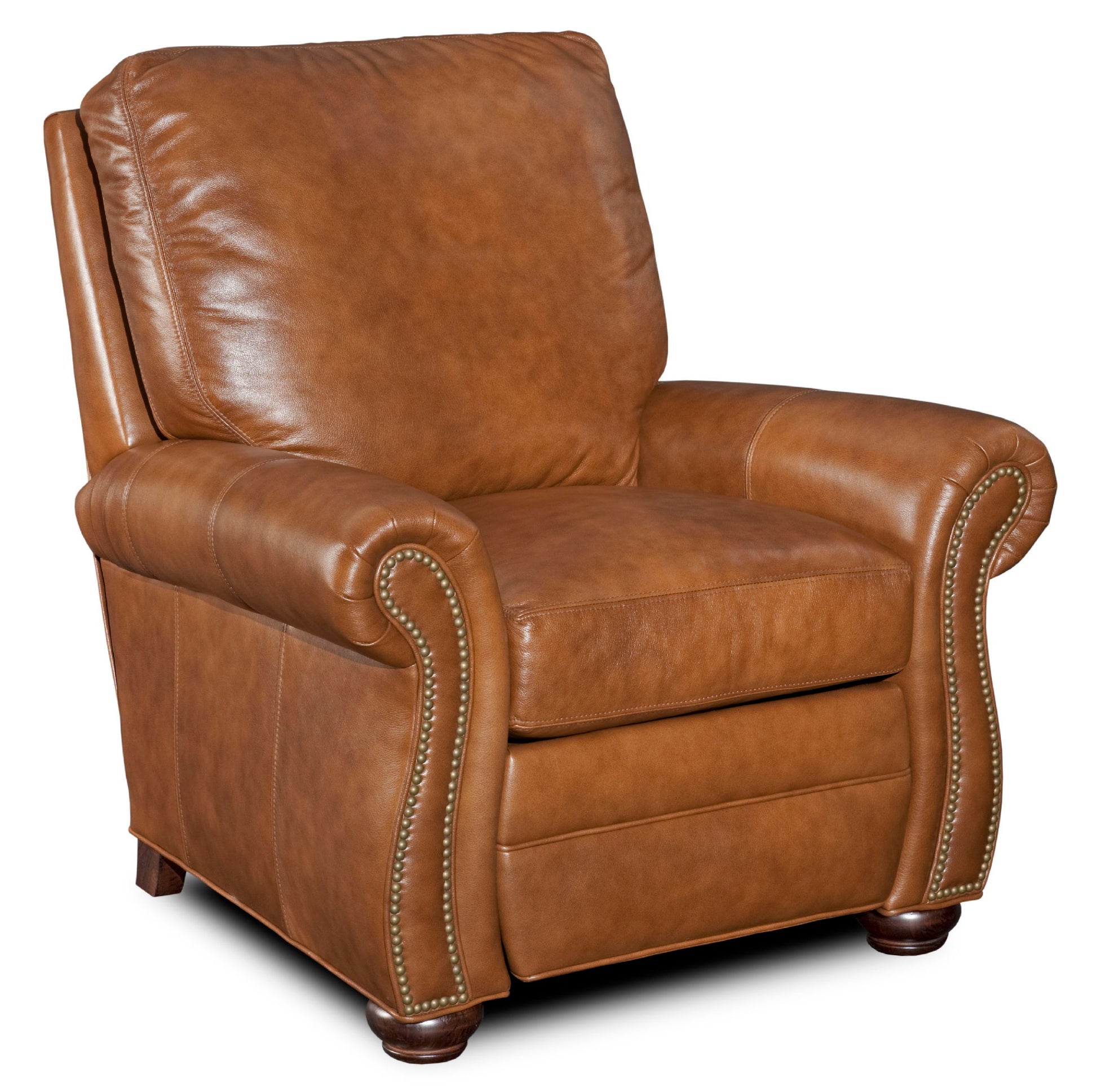 The Sterling 3-Way Reclining Lounger is offered in hundreds of leather options and includes a standard nailhead trim #9 in natural finish. Other decorative nailhead finishes are available. Comes with a standard mahogany finish but other finishes are available. It features a semi-attached seat back and a premier down seat. Power recline is available for an upcharge.