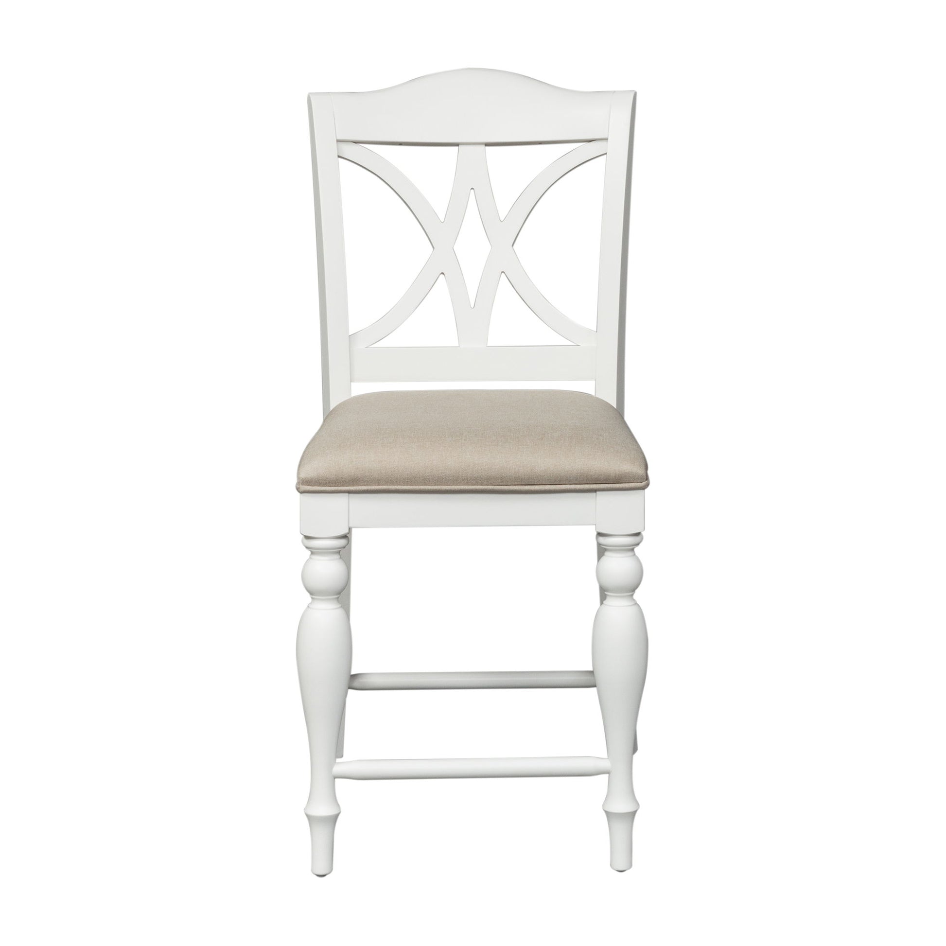 Sit in style and comfort with the Summer House slat back counter chair. Crafted of poplar and rubberwood solids, this piece features an oyster white finish, linen upholstery, nylon chair glides to protect your flooring, and is anchored by beautifully round turned legs. This item has an alternate finish, sure to compliment any space effortlessly.