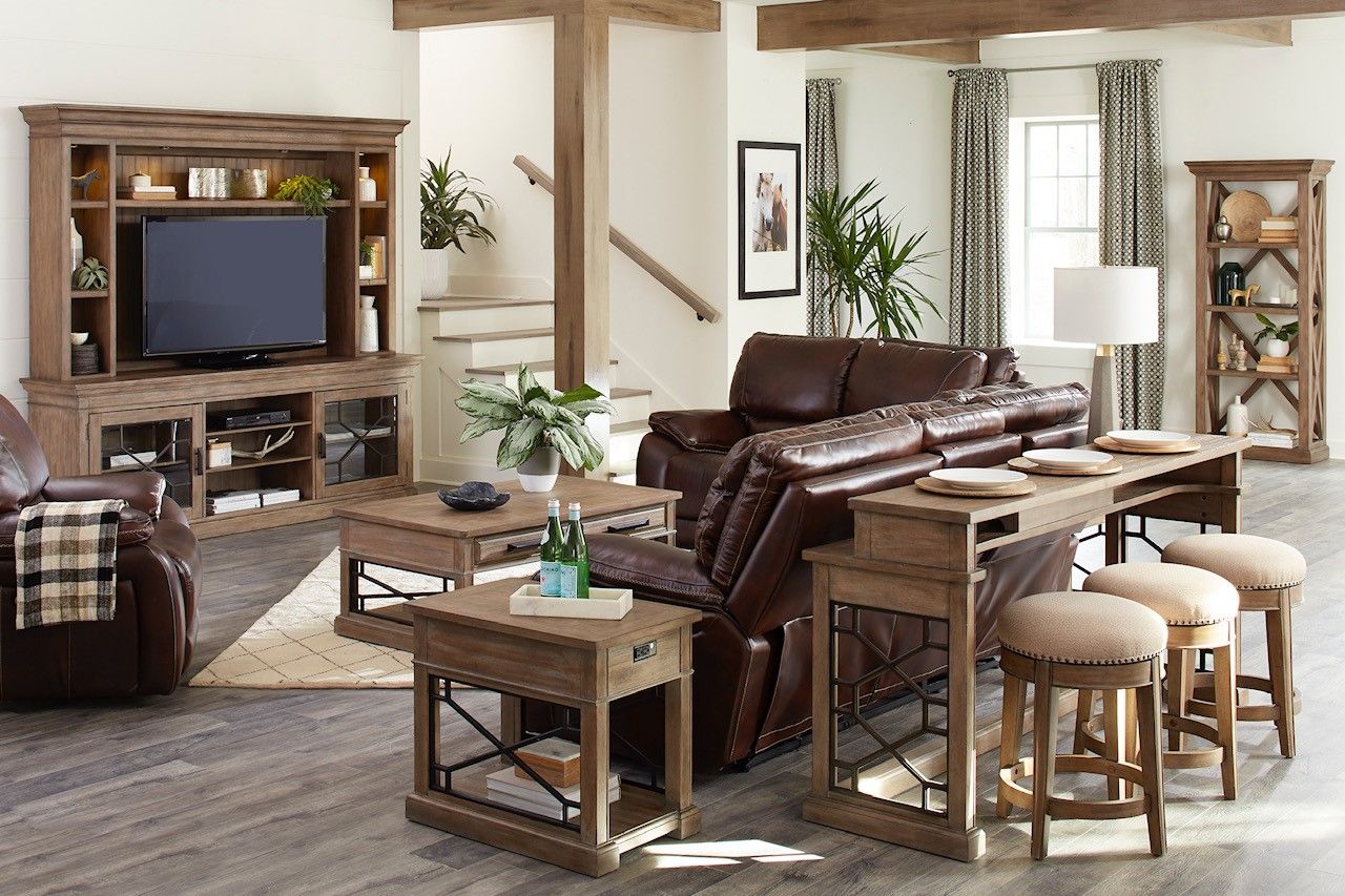 With a touch of rustic charm, this Console with Hutch from the Sundance collection creates an impressive focal point. Perfectly sized for televisions up to 92 inches, it offers storage, display and thoughtful functionality. Its handsome hand-applied, multi-step Sandstone finish complements any room's décor while conveying unique character. Energy-efficient LED lighting with a three-way touch dimmer button highlights the treasures and collectibles you display. Two glass doors with decorative insets provide room for storage and display while three open center shelves are ideal for components. Inspired by the beauty of the great outdoors, it offers a distinctive look that's stunning from every angle.