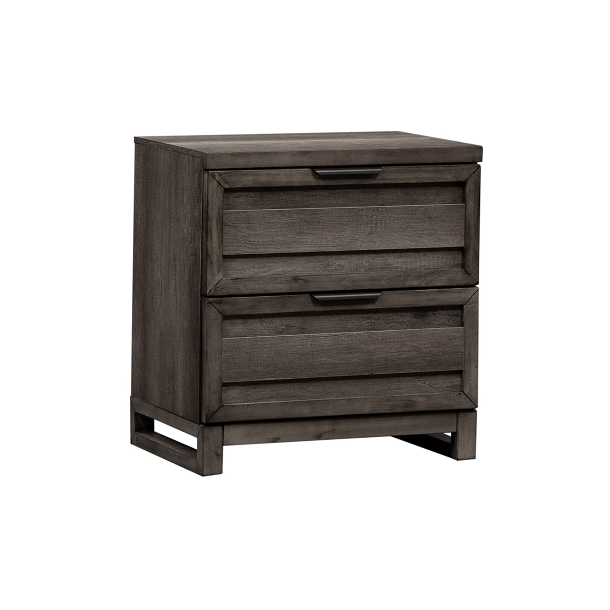 This urban night stand is the perfect way to enhance your room with a modern style. This piece is crafted with melamine and rubberwood solid framing, featuring bottom case dust proofing, solid wood picture frame drawer fronts, anchored by a solid wood sled base. The melamine is scratch resistant and is sure to last in any home. The dark antique brass center finger pull hardware effortlessly adds dimension to this piece, making it stand out in any space.