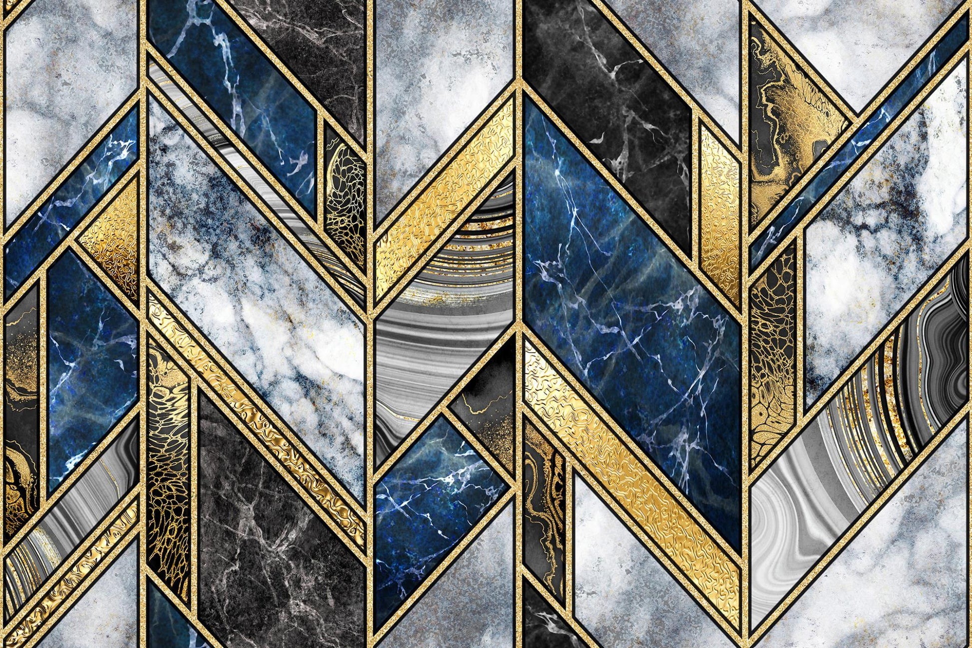 Tempered Glass With Foil - Blue &n Gold Marble Patterns - Pearl Silver