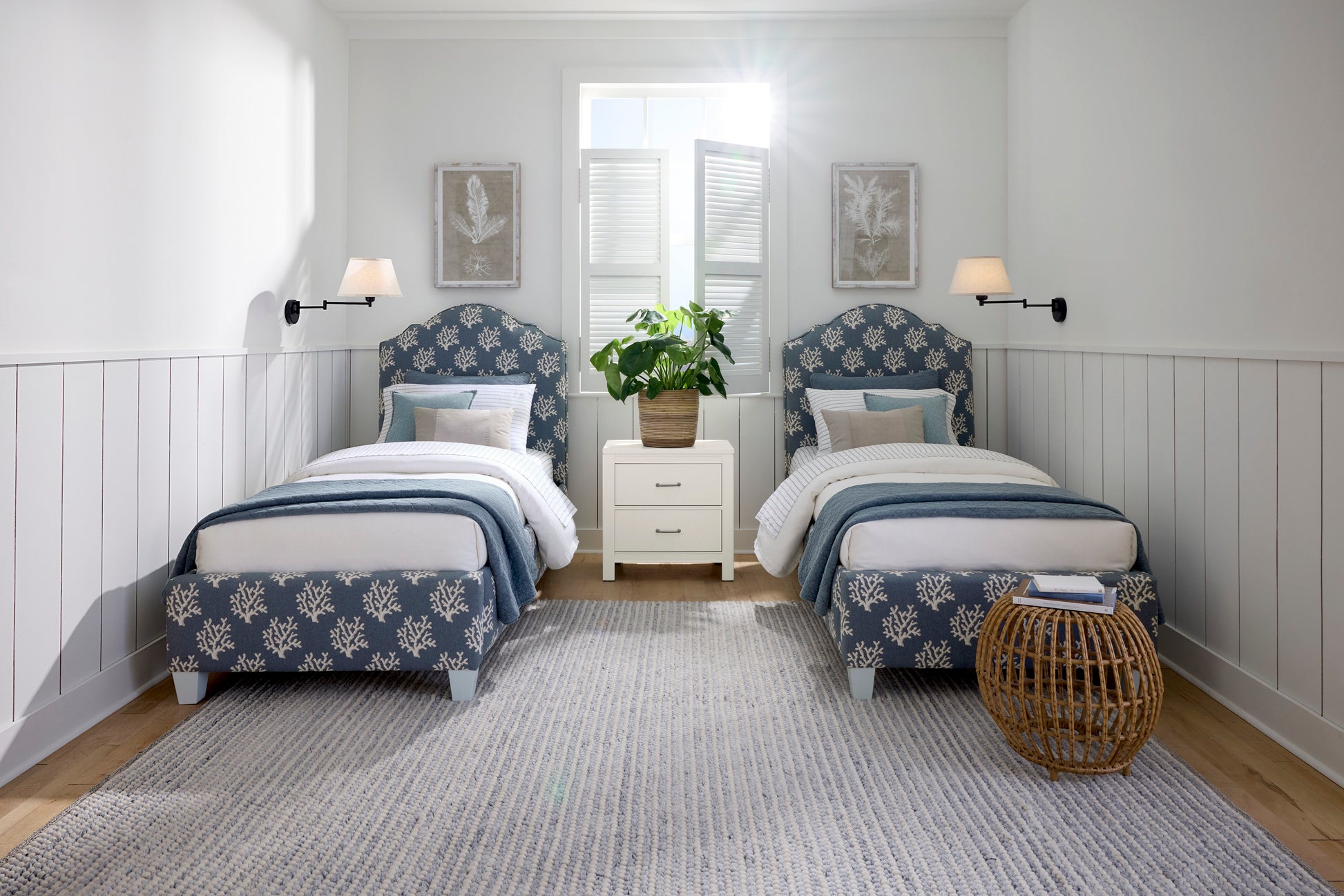 Tide & Timber - Twin - Upholstery Bed In Blue Coral Fabric - Blue Maple