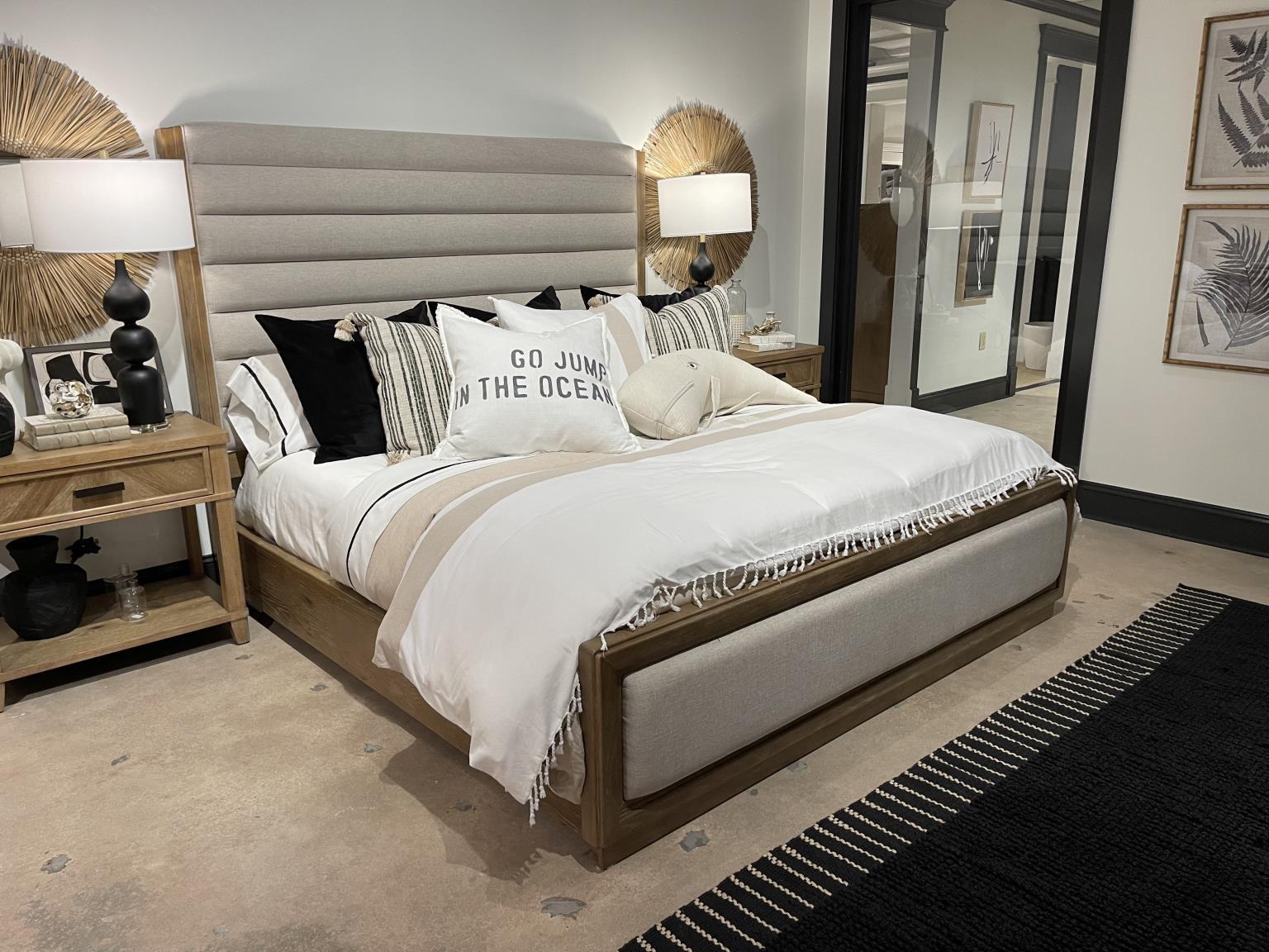 The Torrance whole home collection offers a warm and inviting contemporary casual design with an organic finish and a California coastal vibe. Crafted of random match Oak with Split Heart Cathedral Veneers in a herringbone pattern on the drawer fronts and tabletops the bedroom dining and occasional pieces have clean lines plinth bases and airy tone. Bronze hardware adds a rustic elegant touch.